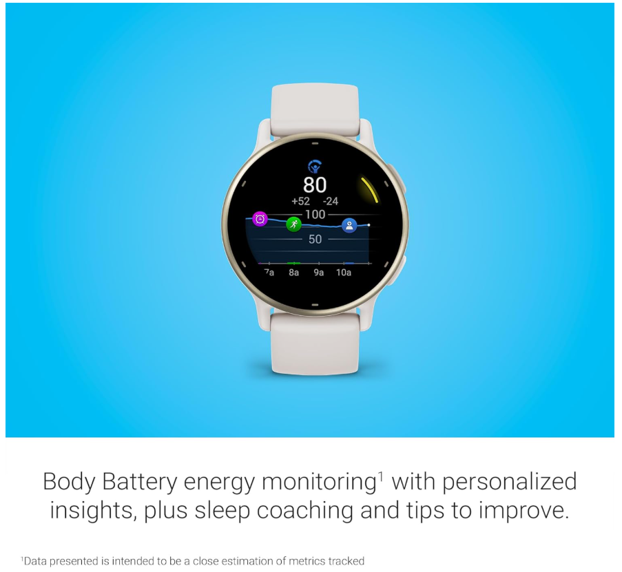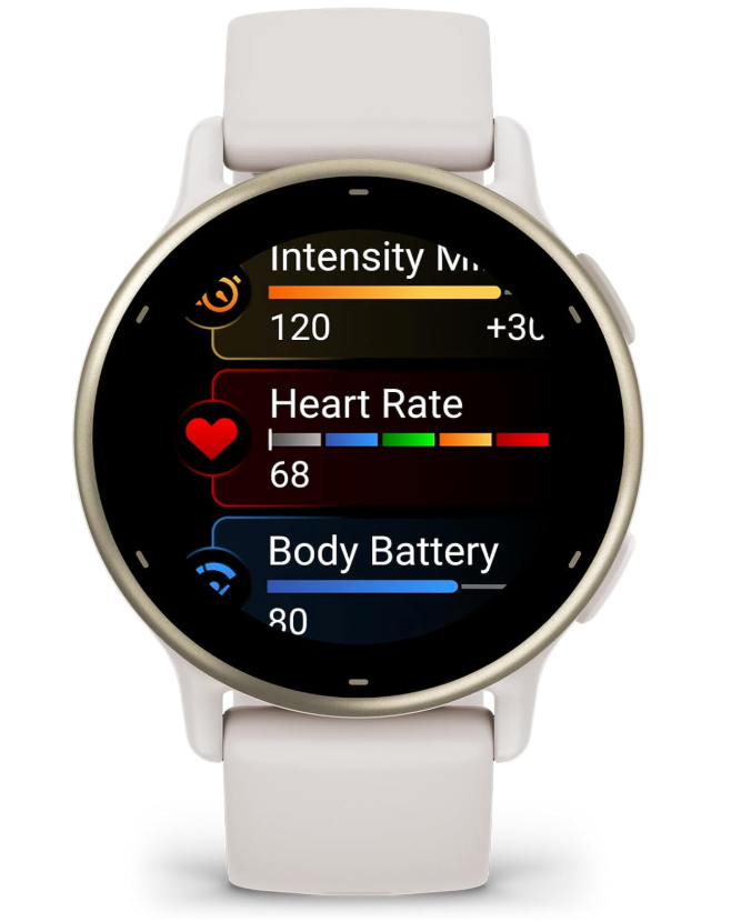 Elevate your fitness journey with the Garmin vívoactive 5, a GPS smartwatch designed to fit seamlessly into your active lifestyle. Its crisp AMOLED display provides clear and vibrant visuals, whether you're tracking your workouts or monitoring your health metrics. The ivory wristwatch is versatile enough for any wardrobe, making it a great accessory for both casual and athletic attire. With a host of features tailored for both fitness enthusiasts and casual users, the vívoactive 5 offers robust monitoring tools and seamless integration with Garmin's ecosystem. It's not just a watch; it's a companion that helps you stay on top of your health and fitness goals, no matter where your day takes you.