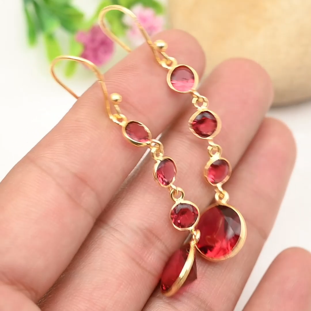 Garnet Sterling Silver Dangle Earrings - Handmade Party Jewelry Gift for Women
