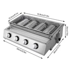Gas BBQ Grill Stainless Steel Outdoor Camp Picnic Barbecue Shish Kabob 4 Burner Notes: 1.Please Use LPG Gas (Liquefied Petroleum Gas). Gas hose not included! 2.This Machine Is Prohibited To Use Medium And High Pressure, Only Low Pressure Valve Can Be Used. 3.Please Prepare 2800Pa Low Pressure Valve And Gas Hose(Not Included). Because The Requirements And Standards Of Each Country Are Different, Customers Need To Purchase Them Locally. (Gas Hose Diameter: About 1cm/0.39in). Description Name: 4 Burners Gas BBQ Grill Dimension: 575*425*200mm Shield material: Steel shield Intensity of Pressure: 2800Pa Color: Stainless Steel Grill Size: 560*250mm Weight: 8.5kg Feature 1. Environmental and smokeless 2. No fire, more safer 3. Keep the original taste 4. Adjustable height Package: 1*4 Burners Gas BBQ Grill Notice: 1.Machine Only, low pressure valve and hose are not equipped. 2.Usually need to use LPG, natural gas can also be used but the nozzle needs to be changed (please look for a professional hardware store). Gas inlet:8mm (inner) / 10mm (outer). 3.This machine is forbidden to use medium and high pressure, only low pressure valve can be used. Payment Delivery details Terms of sales About us Contact us Payment We accept ebay payment 。 Fees such as import duties, taxes are not included in the item price or shipping costs. These charges are the buyer's responsibility. Delivery details Shipping: 2-9 working days to: USA Terms of sales We maintain high standards of excellence and strive for hundred percent customer satisfaction. Feedback is very important to us. We hope that you contact us immediately before you give neutral or negative feedback, so that we can address your concerns. It is impossible to address issues if we do not know about them! About us Your satis faction is our ultimate goal. We work hard to earn your trust and future business. Our certified technicians have tested each item before shipping. The unit comes with 1 year limited warranty on all manufacturing defects. a) If you receive a defective item, you may return it or ask for a discount. Please contact us within 14 days after you receive the package. b) What you returned must be intact and in its original packaging as re? u. Customer is responsible for shipping costs of the returned item. c) We will cover the cost of shipping back t with the shipping rate indicated in the registration page. We will send you a new unit or refund the full payment you paid. Thank you. Contact us Business Hour Business Hour: Monday To Friday: 8:30 AM to 5:00 PM (Beijing China time) Due to time zones, our reply to your questions may not be immediately. But within above working time, we will reply your email within 24 hours. If it's non-workdays, please kindly be patient and wait till Monday. Please contact us with ebay message. Please feel free to contact us if you have any questions. Monday To Friday: 8:30 AM to 5:00 PM (Beijing China time) Due to time zones, our reply to your questions may not be immediately. But within above working time, we will reply your email within 24 hours. If it's non-workdays, please kindly be patient and wait till Monday. Please contact us with ebay message. Please feel free to contact us if you have any questions.