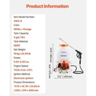 VEVOR Gas Powered Backpack Sprayer, 26.5CC 0.9HP Engine, GardenSprayer with 5 Gallon Tank, Large Area Coverage, Lawn SprayingMachine with 24 in Wand & Nozzles for Efficient Gardening &Farming Wide Mouth Lid Covers More Ground Includes Gloves & Ear Protection Multi-Purpose Use Long Reach & Easy Handling Versatile Use Ignition Method: Electronic Ignition,Item Dimensions (LxWxH): 17.13× 14.76 × 23.82 in / 435 × 375 × 605 mm,Color: White +Orange,Powder Tank: Not Included,Fuel Type: 92# gasoline orequivalent ethanol gasoline (ethanol content ≤10%) mixed with2-stroke engine oil (JASO-FC grade or above), 50:1 volumeratio,Tank Capacity: 5 gal / 19 L,Engine Speed: 7000 r/min±10%,Item Model Number: 3WZ-9,Tank Material: HDPE,Net Weight: 10 kg/ 22.05 lb,Power: 0.65-0.85 kW,Start Method: Recoil Start,MainMaterial: Plastic + Metal