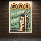 Gas Station OPEN 24 HOURS Vintage CAR SERVICE Poster Flag Garage Decor Banner