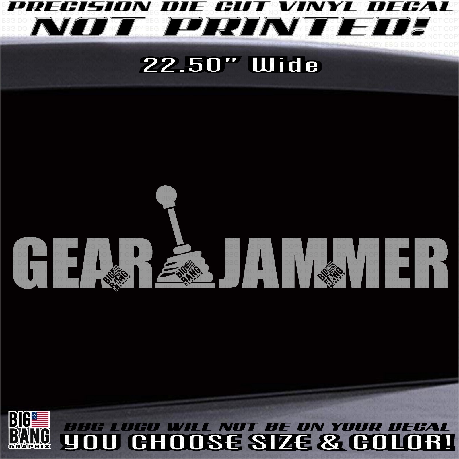 Gear Jammer Vinyl Decal Sticker Die Cut Lettering Truck driver Trucker Semi Rig This listing is for 1 High-Quality Vinyl Decal/Sticker. Please enter how many you want in the -Quantity Box- then select the color from the drop-down bar. All colors are available EXCEPT green, medium blue & hot pink. Decal size is: 22.50 Inches at its longest points x 5.50" tall Makes a great gift! All of Big Bang Graphix Decals are made with high-quality professional grade vinyl rated to last 7+ years outdoors and; several more indoors. This decal/sticker can be applied to any smooth flat surface like glass, metal, plastic, wood or any smooth painted surface. Car wash safe professional grade vinyl. They can be applied to walls but are not recommended for walls with a texture to them. This Decal if being applied to your car is made to be applied to the OUTSIDE of your vehicle window, and it is removable but NOT REUSABLE. This is a vinyl decal and does not have a background. You transfer it to your surface with the included transfer tape. Where the black is in the photo, will be your surface showing through. Only the colored part will be in your final applied decal. All decals will come with installation instructions. Big Bang Graphix Decals are MADE IN THE USA. Please let us know if you are interested in a bulk order and we can negotiate a discount price for you. WE ARE NOT LIABLE FOR DECALS RUINED DURING INSTALLATION. Thank you for supporting our small business. In order to qualify for shipping discount, you must pay for all items on (1) ONE invoice. WE ARE NOT LIABLE FOR DECALS RUINED DURING INSTALLATION. You MUST squeegee the decal down making sure the letters stick to the application tape (not the liner) before separating the two pieces before installation. When you purchase this decal - you are agreeing to these terms. We accept returns but decal must be in original condition, not partially installed to be eligible.