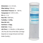 Coconut Shell Carbon Block Water Filter Cartridge 10"x2.5".Micron rating: 5 Micron Fits standard 2 1/2 by10-Inch in line filter housings,as prefilter of Reverse Osmosis System Water Filtration Carbon block filter is used to reduce chlorine, taste & odors, very fine particulates.Flow rate: 2.5-5 GPM (It depend on the feed water pressure and quality.) LIFE TIME:6-12 months.The Life Time of the Filter Cartridge Depends on Usage Amount and Feed Water Quality Work Pressure: 10-70 psi ,Work Temperature:40-110°F/5-45°C , Shelf life: 3 Years ISO9001:2015 certificated Manufacturer Pack of 4 filters in the box