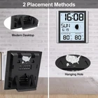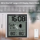 Geevon Atomic Wall Clock with Backlight, Auto-Set Digital Atomic Alarm Clock with Indoor Outdoor Temperature,Calendar,Moon Phase for Home Office Elderly(1 Wireless Outdoor Sensor) About this item 【Atomic Clock with Indoor Outdoor Temperature 】Atomic wall clock with temperature monitor function,The Wireless outdoor sensor (included) transmits the outdoor temperature ( ° C /° F optional)to the large digital wall clock. Which means you can put them inside your patio, backyard, garden or courtyard,easily monitor outside conditions without going out. 【Enhanced Atomic Clock Technology】Atomic clock wall will always be accurate to within one second as it receives daily WWVB updates, just select your time zone at the setting buttons of the clock and turn on the DST if applicable. Automatically updates for daylight saving time,weekday,day,month,time,help you manage regular life. 【8.8'' Large Digital Wall Clock with 8S Backlight】Large atomic wall clock battery operated with an 8.8'' LCD TN high definition slim display, can simultaneously display date, time (12/24H), week,moon phase,indoor&outdoor temperature(° C/° F),records the daily MIN & MAX data and display tendency.And the digits are big enough for easy-viewing. 【Atomic Alarm Clock with Snooze Function】Not only a Calendar and Thermometer, but also can be used as a loud alarm clock. When the alarm goes off,Geevon atomic wall clocks battery operated will send out a gradually ascending "beeping" sound to wake you up. Before the alarm stops itself, press the "SNOOZE" button to get an extra 5-minute nap. Perfectly designed for heavy sleepers. 【Digital Wall Clock & Desk Clock】Our atomic digital clock features 2 hanging holes and a kickstand, can not only be placed on the nightstand, but also hung on the wall. The bold, simple styled bezel of the clock gives it a modern look, with a classic feel. Perfect for any room in the house, office, bedroom, closet, classroom or living room. NOTE: The alarm goes off for 2 minutes, and if there is no action during this period, it will no longer continue to alarm. Product details Product Dimensions : 7.87 x 0.7 x 7.75 inches; 1.81 Pounds Item model number : 228614C US Batteries : 5 AAA batteries required. Date First Available : August 23, 2022 Manufacturer : Geevon ASIN : B0B2QLW9LJ Country of Origin : China
