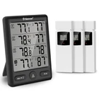 Indoor Outdoor Thermometer Wireless with 3 Remote Sensors, Digital Hygrometer Thermometer, Temperature Humidity Monitor Gauge with 200FT/60M Range 【Accurate Temperature & Humidity Readings】 Indoor outdoor thermometer hygrometer wireless weather station with large LCD display measures the real-time temperature and humidity with past 24 hours Max/Min records and trends arrows. Assess historical data and refer to the Comfort Indicator to quickly know your home living conditions. Works with the hi/lo temperature and humidity alert function, helps create a healthier lifestyle. 【Come with 3 Wireless Sensors】 Wireless indoor outdoor thermometer with remote sensors support to be connected to display temperature and humidity readings from 4 different places simultaneously up to 200FT/60M apart (Wireless Frequency: 433 MHz). Monitor your whole home, basement, or greenhouse confidently with our digital temperature humidity meter. 【Wide Measuring Range】Indoor outdoor temperature and humidity monitor measures inside temperature from 50°F ~ 140°F(-10°C ~ 60°C) , and outside temperature from -58°F ~ 158°F(-50°C ~ 70°C) with ± 1.8°F /1°C accuracy. The indoor and outdoor humidity range is 20%-95% with ± 5% accuracy. (Wet: humidity﹥70%; COM: 40%≤humidity≤70% & 20°C≤Temperature≤28°C); DRY: humidity﹤40%. ) 【Max/Min Record & Temp Alert】 Inside outside thermometer for home features Max/Min and Alarm functions on both in/out temperature and humidity. The Max&Min data will update every 24hrs and you can press the “MEM” button to switch between ℃ and °F. With an audible alarm, you can set the maximum and minimum temp and humidity alert values manually. It will ring when the value reaches the point of pre-set max or min alarm values. 【Multiple Applications】Geevon indoor outdoor thermometer wireless can be placed on the desk or hung on the wall as you like. You can place it in your bedroom, baby room, wine cellar, basement, garden, greenhouse, grow tent, or office. The base station is powered by 2 AA Battery, and the remote sensor is powered by 2 AAA Battery(Not Included). Please let us know if there are any problems with the weather thermometers, we will do our best to solve the problem for you.