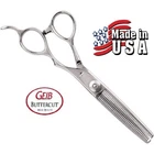 GENUINE Geib Buttercut GATOR Professional Grooming Shears Designed by groomers for groomers, Geib Gator shears offer unsurpassed balance, weight, and feel. High-performance, high-quality shears at an outstanding price. Brand New in MANUFACTURERS LEATHER CASE! Please Note: Due to the high-precision nature of this product, we cannot accept any returns or exchanges after 10 days. If product is found to be defective on receipt, you may return for exchange of same product. *Listing is for the 6 1/2" 40 Tooth Thinning Blender Geib Gator Buttercut Shears Thinning/Blending Shears are ideal for thinning hair or coat and for blending work. Each Geib Gator Shear is manufactured from a high-quality stainless steel alloy with a Rockwell Hardness rating of 57. This alloy allows the blade to be honed to razor sharpness. Blades stay sharp for months. Shears are precision weighted and balanced. Handles and finger rests are contoured for maximum comfort. Double-screw tension produces smooth scissoring. These features combine for a shear that drastically reduces the amount of effort needed for scissoring. The result is an increase in productivity and a reduction in hand fatigue. Designed by groomers for groomers, Geib shears offer unsurpassed balance, weight and feel. If you are a Professional groomer or home groomer and you know the name GEIB then I really don't need to say much more. These are one of the most sought after, requested brand of shears on the market! My first experience trying the Geib brand was at a grooming show...I absolutely fell IN LOVE with them and bought my first pair on the spot! Geib shears are famous for their quality workmanship, beautiful appearance and high performance. These shears and thinners carry a lifetime warranty on parts, materials and workmanship. Developed and manufactured by E. M. Geib, Jr., a pioneer in research and development, a world-renowned Master shear maker and designer. Mr. Gieb’s extensive knowledge and experience is utilized to design and manufacture hair cutting tools with the stylist in mind. Only available through independent retailers Used by Professional Groomers, Trainers, Veterinarians, Breeders, Barbers, Hair Stylists, Handlers, etc. Great for home use, mobile groomers, kennel workers, pet shop workers, vet technicians, etc. BRAND NEW! *Beware of other products being sold as new when they are actually counterfeits/fakes, used, returns, re-furbished or older and outdated...we are an authorized, independent retailer; Groomer, Stylist/Barber & Pet Supply, bandana/flag, etc. Shop and sell only NEW, Top Quality grooming, hair stylist, barber and other miscellaneous products. **We sell all kinds of Top Quality Grooming products and Pet Supplies from top brands such as Oster, Andis, Geib, Laube, Wahl, Mars, Franklin, Master Grooming Tools, Crazy Dog, Cardinal, AARONCO, Paw Brothers, Coastal, Millers Forge, Resco, Top Performance, Master Equipment, ProSelect, Guardian Gear, Aria, Intellipet, Total Pet Health, Clean Go Pet, Slumber Pet, Casual Canine, , etc. and all kinds of Bandanas (Hav-A-Hank, etc.), Fitted Bandanas (Hav-a-danna, Amazing Danna Doo rags or Skull caps), USA Made Flags, similar items and a whole lot more in my EBay Store...We are always adding new products so be sure to check it out! Visit my store: HappyPaws Grooming and Pet Supplies Be sure to add me to your favorites list ! RETURNS/REFUNDS/EXCHANGES All returns are accepted. We try to accurately and honestly describe all our products and handle returns in a fair and reasonable manner. All items, unless otherwise stated, are new with manufacturer’s warranty (if any warranty-this will be stated in item description). Please Note: Due to the high-precision nature of this product, we cannot accept any returns or exchanges after 10 days. If product is found to be defective on receipt, you may return for exchange of same product. Items must be returned in same condition they were sent to you in-new, clean condition in original packaging with all original parts, tags, papers, boxes, etc. If item is not returned in new condition or with all original paperwork/boxes, etc. a fee may be charged, or you may only receive a partial refund. After return period please refer to manufacturer’s warranty (if any). RETURNS: If you find item to be or damaged on arrival, please notify me via email prior to opening return and I will try to correct issue or problem. Most items can now be returned via eBay’s automated return system which will provide a return label and other info. (Under your eBay purchases there will be a link next to the item purchased for returns). Please be sure to select correct reason for return e.g. just didn't like it, does not fit, found better price, changed my mind, item defective, etc. EXCHANGES: Exchanges are easiest & quickest to process by doing return through automated EBay system for item you don't want and then just buying item you want. Once I receive return, I will process refund. COMBINED SHIPPING Yes, I do offer a combined shipping discount on most items I sell. All items must be paid for on one invoice to qualify for shipping discount. Please purchase items you want but do not pay until I have sent you a combined invoice with shipping discount applied. If in question, please message me before making payment. *International Buyers – Please Note: Import duties, taxes, and charges are not included in the item price or shipping cost. These charges are the buyer's responsibility. Please check with your country's customs office to determine what these additional costs will be prior to bidding or buying. Also, you may experience delivery delays or experience longer shipping times due to customs-related delays. I buy in large wholesale quantities / lots at a major discount and pass on the savings to my customers. Yes, I do also sell almost everything I sell in WHOLESALE QUANTITIES at WHOLESALE PRICES...Email me for quote if interested and I will put up an eBay listing spe