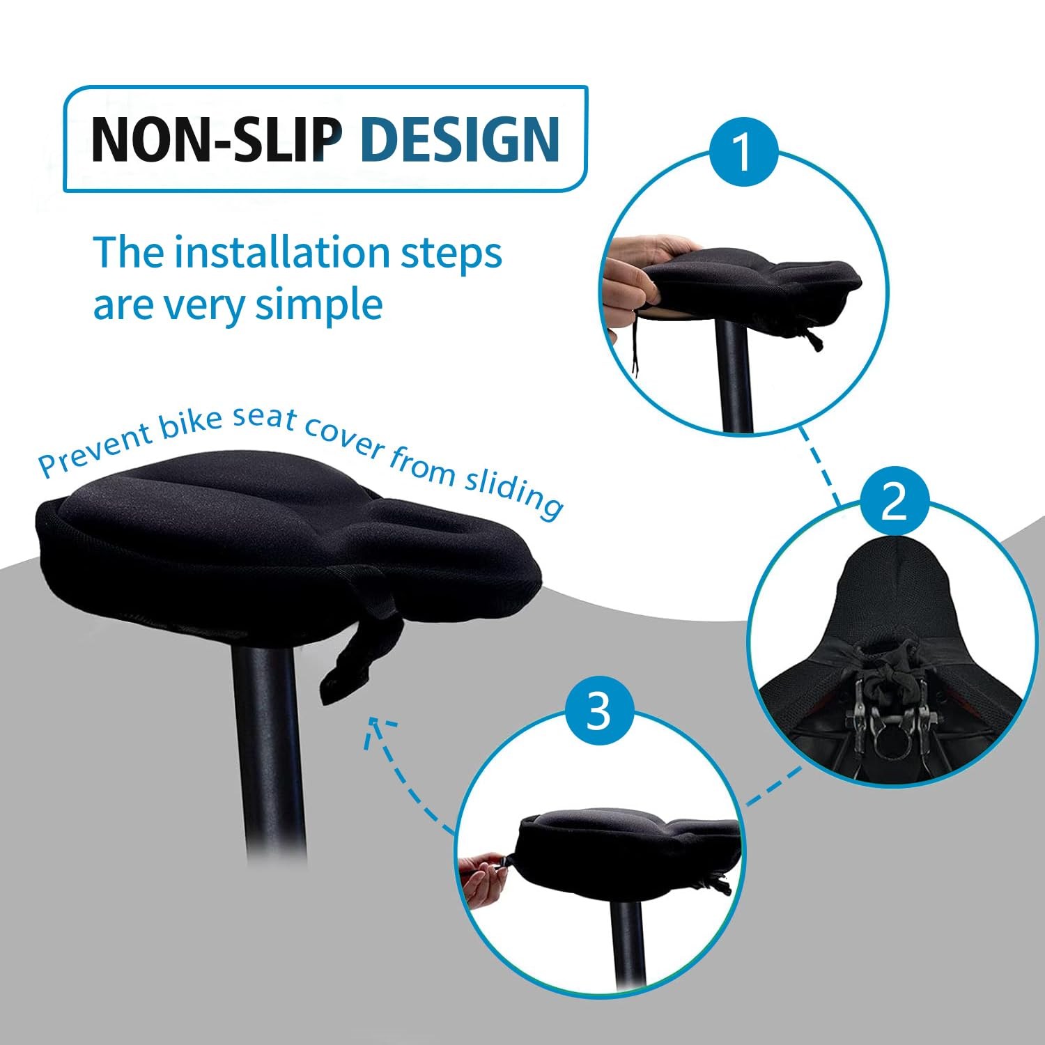 bicycle seat cover bicycle seat covers comfort bicycle seat covers for comfort bicycle seat cushion bike seat cover bike seat cover women bike seat cushion bike seat cushion cover bike seat cushion for women bike seat cushion wide bike seat cushion women cruiser bike seat cover exercise bike seat cover spin bike seat cushion stationary bike seat cushion cover stationary bike seat cushion wide wide bike seat cover wide gel bicycle seat cover COMFORT: Bike seat cushion for women with breathable airflow vent in the middle for heat-dissipation. Wide Foam & Extra Soft bike seat cover make sure that working out on your bike will be comfort,using a bicycle seat cushion,Effectively absorb the shock and reduce pain,Better protection for your butt STATIONARY BIKE SEAT CUSHION:11.81 x10.63 x 2 inches (L*W*H) Fits for the width of bicycle seat in the range of 8.5-10 inches. You can use this bicycle seat cushion on cruiser bikes,spin bike,stationary bike, road bikes or as your comfy spin bike seat cushion. We recommend you to double check the size of your saddle before ordering an stationary bike seat cushion ANTI-SKID DESIGN:Exercise bike seat cushion has anti-skid particles, straps and Drawstring to effectively prevent bike seat cushion cover from slipping during cycling.Non-Slip Design to keep stable RAIN COVER:Stationary bike seat cushion comes with a rain cover,which helps keep your bike seat from dust and water and sunlight, so you don’t need to remove the bicycle seat cushion even if it’s raining 100% CUSTOMER SATISFACTION:Your satisfaction is our goal, If the bicycle seat cushion didn't improve comfort or the size you bought is wrong, please don't hesitate to contact us, we will reply to you the first time and give you a good solution