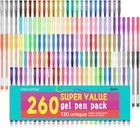 260 super valued feela gel pens pack includes 130 unique gel pen and 130 refills. Color assortment: Glitter, Neon Glitter, Neon, Metallic, Pastel, Swirl, and Standard. Suit for children and adult, great for coloring, doodling, drawing and sketching. With Color box packing, eco friendly and delicate. Tip size: 0.6-1.0mm. Super smooth writing and long lasting. Acid-free and non-toxic, conforms to ASTM D-4236. Performance&Satisfaction: We provide you with not only our high quality products but also our quick response service. Product Description