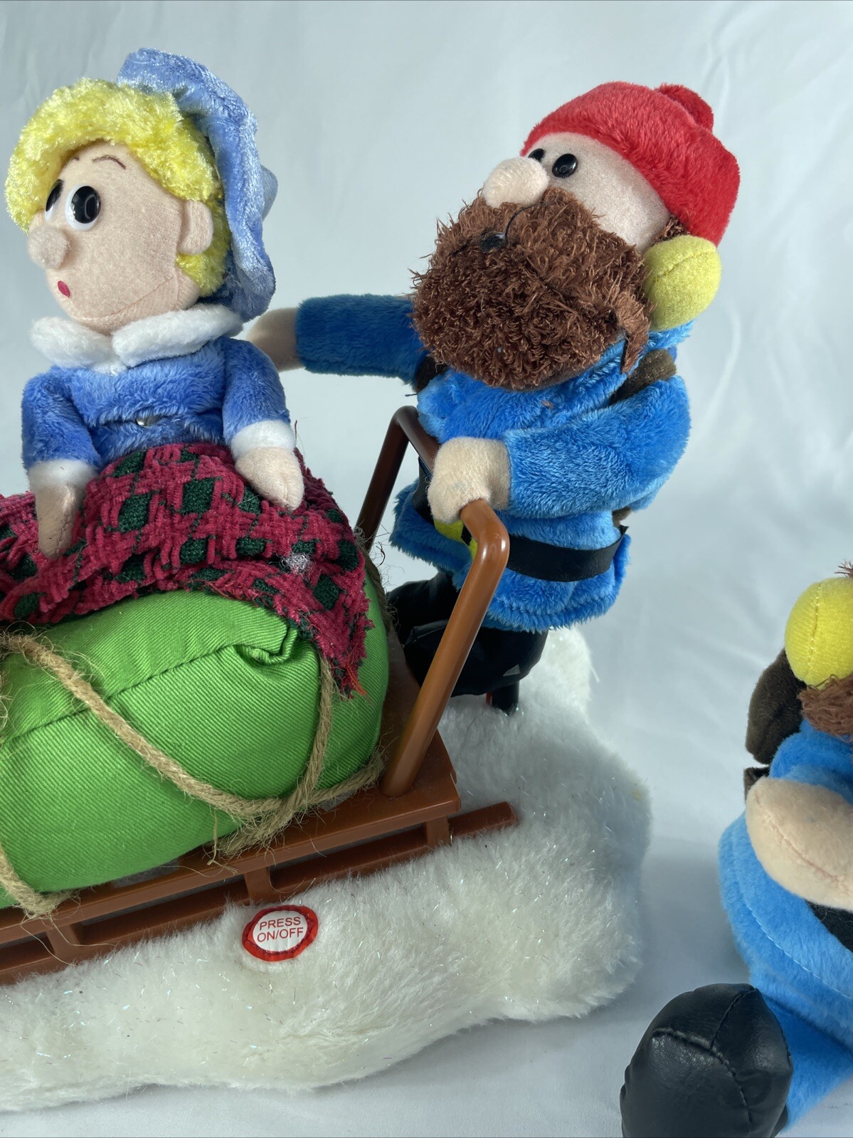Bring some holiday cheer to your home with this Gemmy Rudolph the Red Nosed Reindeer Hermey Yukon Cornelius Sleigh. This animated plush character sings and dances to the famous song "Santa Claus is Coming to Town" with multicolor lights. Perfect for Christmas, this collectible was manufactured in 1992 and is in great working condition. Add this unique piece to your holiday collection and let Hermey guide your sleigh to a festive destination. This item is not handmade and is not in a vintage condition. It requires batteries to operate and is made of plush, batteries, and animatronic materials.