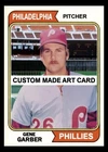 Gene Garber Philadelphia Phillies 1974 Custom Made Baseball Art Card Blank Bank Garber was purchased by the Phillies, July 12, 1974. He played with them until 1978 Watermark (Custom Art Card} does not appear on actual card that you will receive. Card is handmade, art cards ACEO, made by me. These cards are purely for enjoyment. Purposes Only They have no value. Just sentimental value. These cards are not mass produced You will receive the card that is pictured Custom handmade art card. This card is for collecting only. There is no book value. Card measures 2 1/2" x 3 1/2" Unless otherwise noted Player is cut out with custom background Blank White Back, (No Statistics) Printed On Highest Quality Photo Paper for Crystal Clear image Glued to rigid posterboard. Hand cut individually. Thicker than regular issued cards.