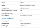 This general purpose relay from Omron is a reliable and efficient choice for controlling electrical equipment. With a maximum amperage of 250 VAC and a coil voltage of 12 VAC, it is suitable for a variety of applications. The relay is designed for AC current type and has a DPDT configuration with a test button for easy operation. Ideal for use in business and industrial settings, this relay offers high-quality performance and durability. Its compact design and easy installation make it a great choice for controlling electrical equipment in a variety of settings. Whether you need to control a motor, compressor, or other electrical device, this Omron relay is a reliable and efficient choice.