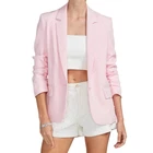 Generation Love Nadia Pearl Blazer Jacket Ruched Sleeves Pastel Pink Size XS New w/ tags Retail $395 The "Nadia Pearl Blazer" from Generation Love features a relaxed silhouette with pearl detailing and ruched sleeves. Self: 95% Polyester, 5% Spandex Fully Lined with 95% Polyester, 5% Spandex 3/4 sleeves Pearl embellished Collared Button front closure Flap front pockets Lined Length: 25" Armpit to armpit: 18.5" Features: • Blazer Size: Womens XS Condition: New With Tags