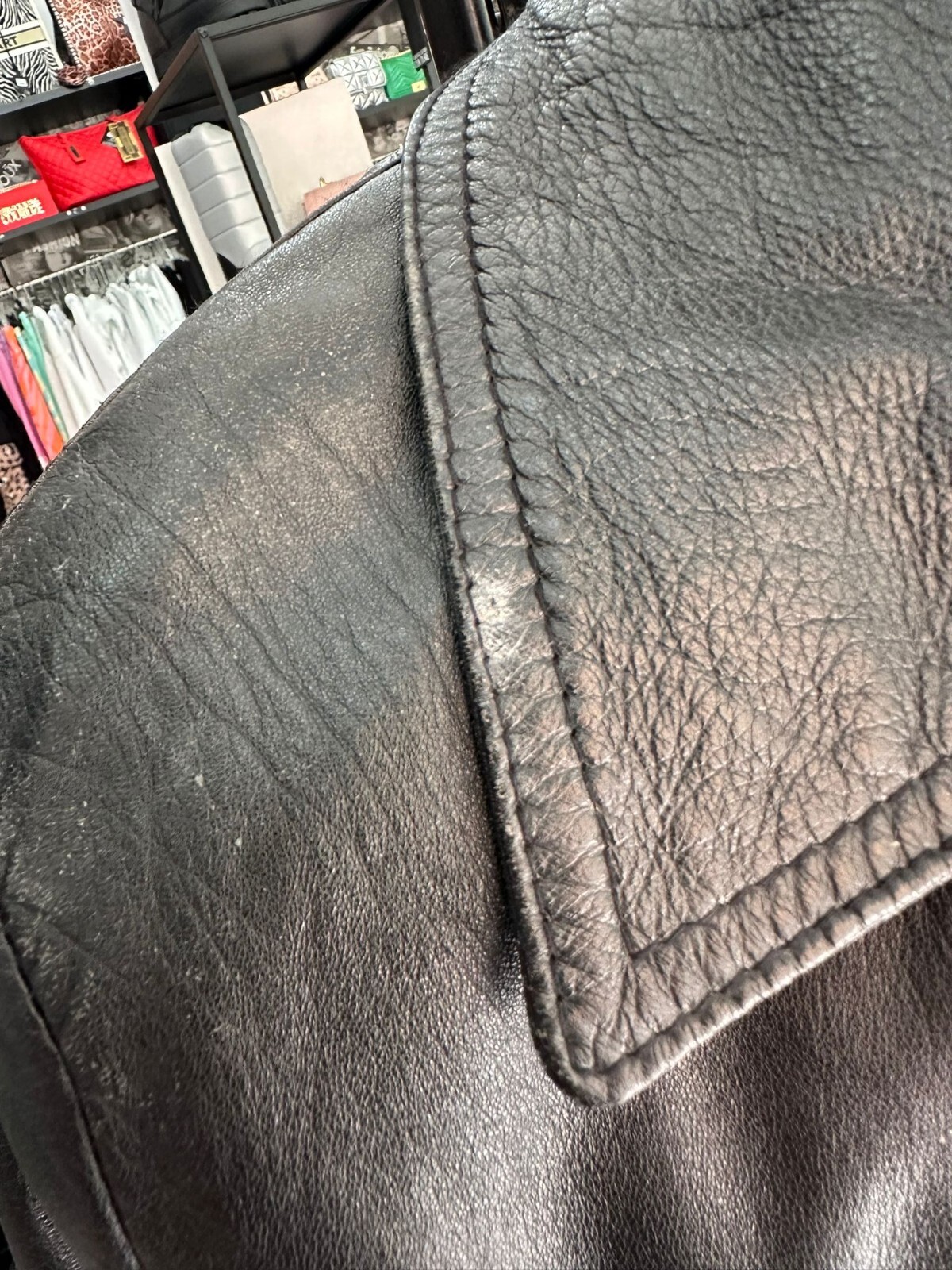Outer Shell Material:LeatherStyle:Jacketgtin13:Does not applyClosure:ZipperSize:48Brand:UnbrandedColour:BlackSize Type:RegularVintage:YesUPC:Does not applyType:JacketDepartment:woman