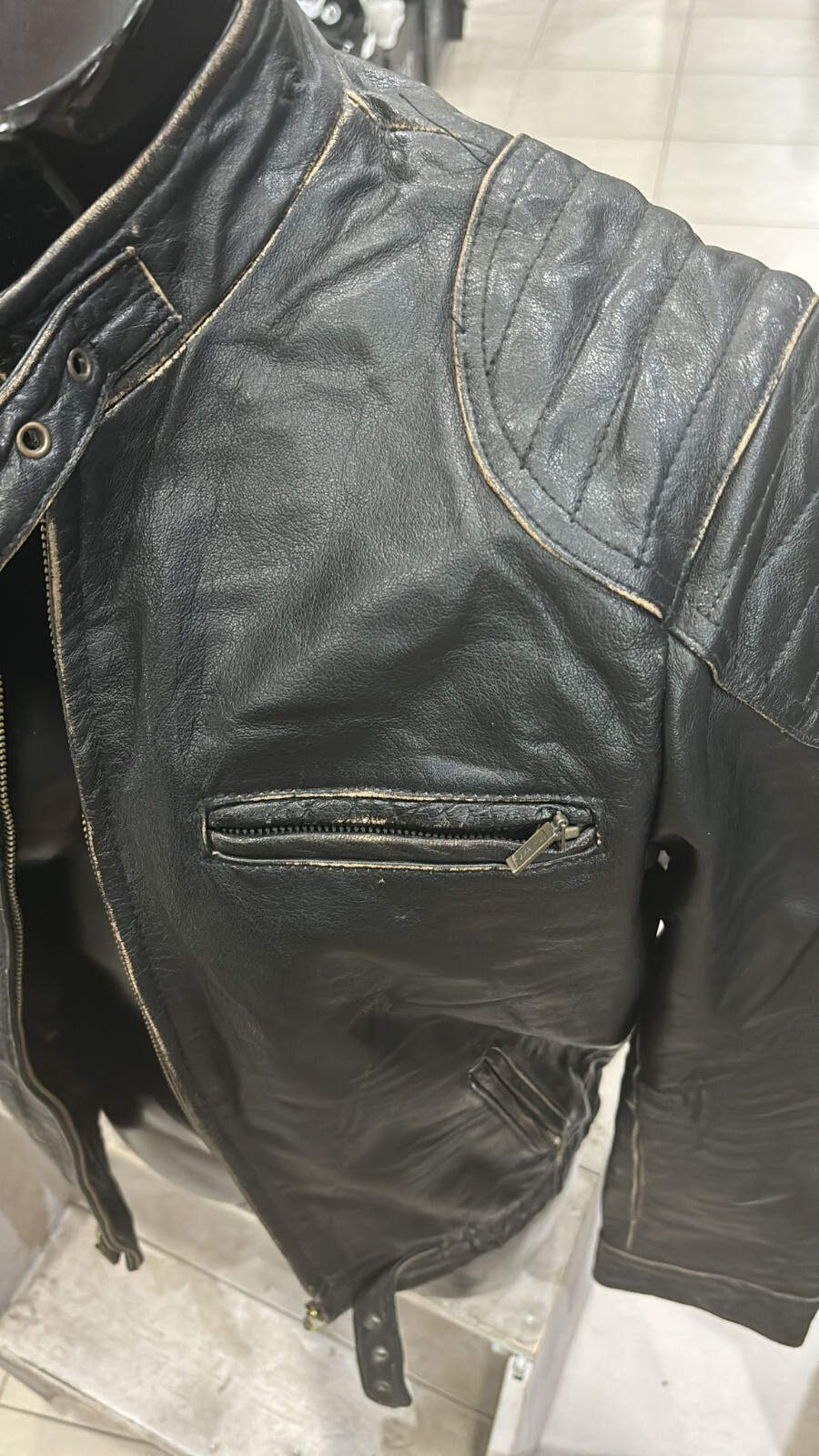 Color:BlackUPC:Does not applySize:48Outer Shell Material:LeatherStyle:JacketBrand:UnbrandedSize Type:Regulargtin13:Does not applyClosure:ZipperDepartment:womanVintage:YesType:Jacket