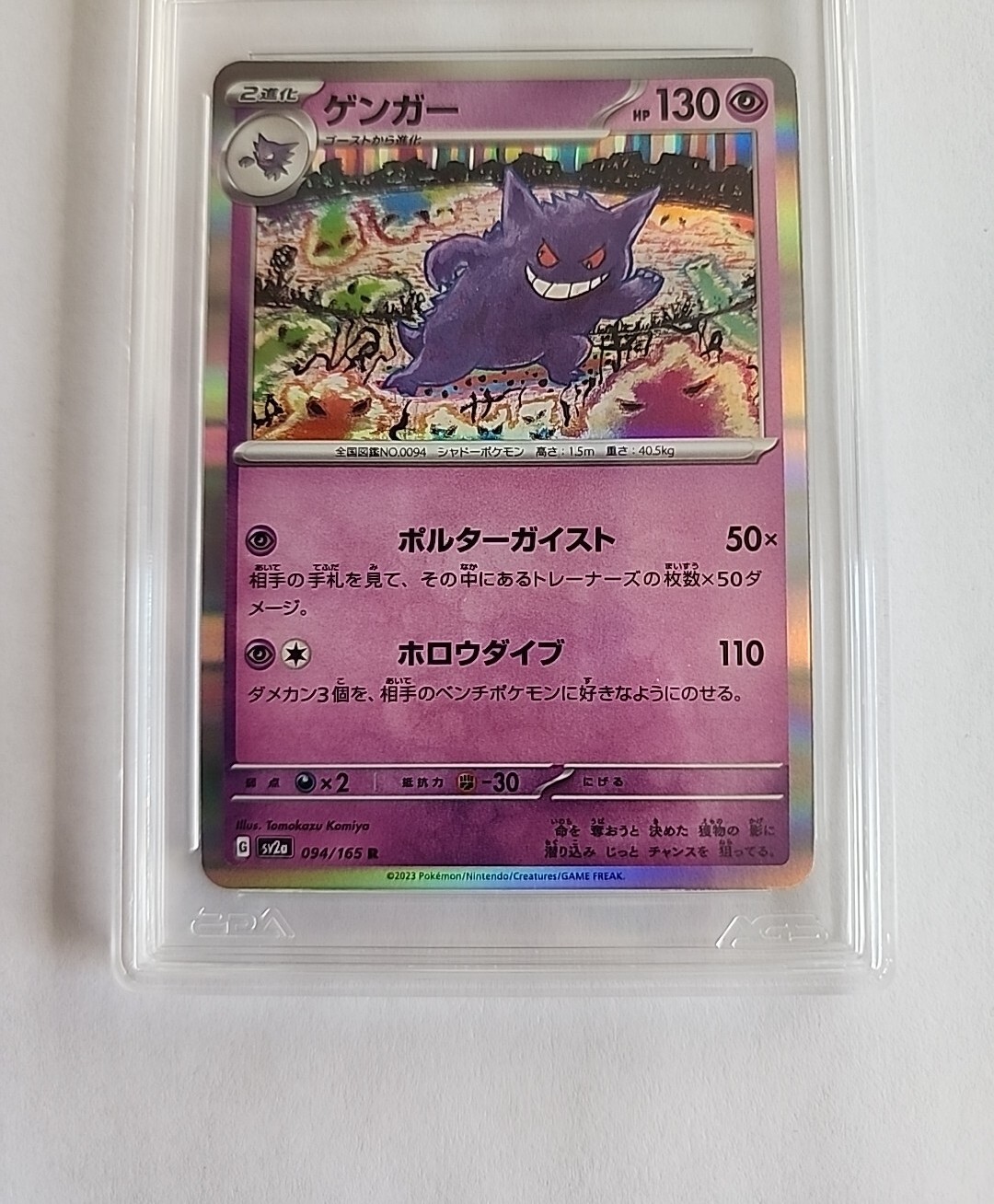 Elevate your Pokemon Card collection with the Gengar 094/165 Holo Rare Japanese Card from the Pokemon Card 151 set. This Stage 2 Psychic-type card boasts a striking holographic finish that captures the essence of Gengar's ghostly charm. A must-have for enthusiasts and competitive players alike. The card will be packaged with cardboard around the card, bubble wrapped, and placed inside a bubble mailer. Please see photos for details and condition.