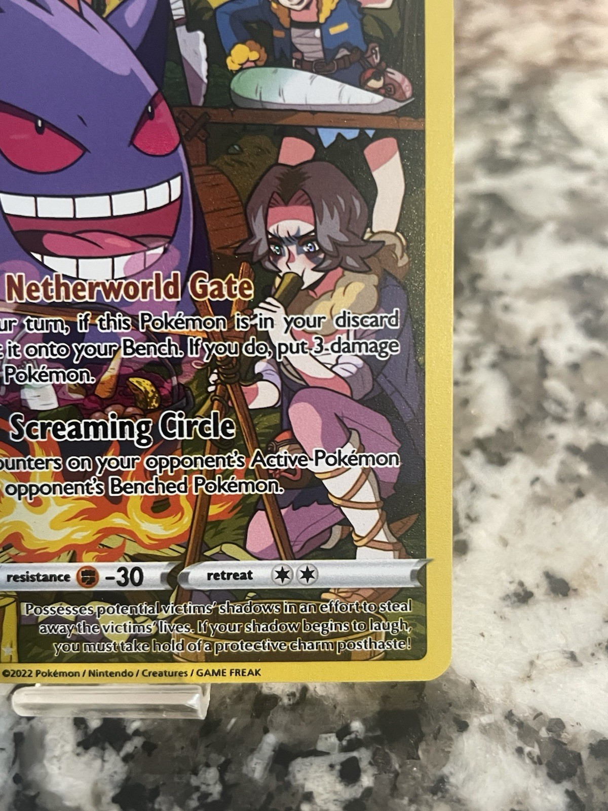 Very happy with this seller! Item was a great price and it’s in great condition save for one print line (totally acceptable as this is part of my PC). The item was packed well in a toploader and looks great! No issues with damage during shipping at all. Would highly recommend this seller!