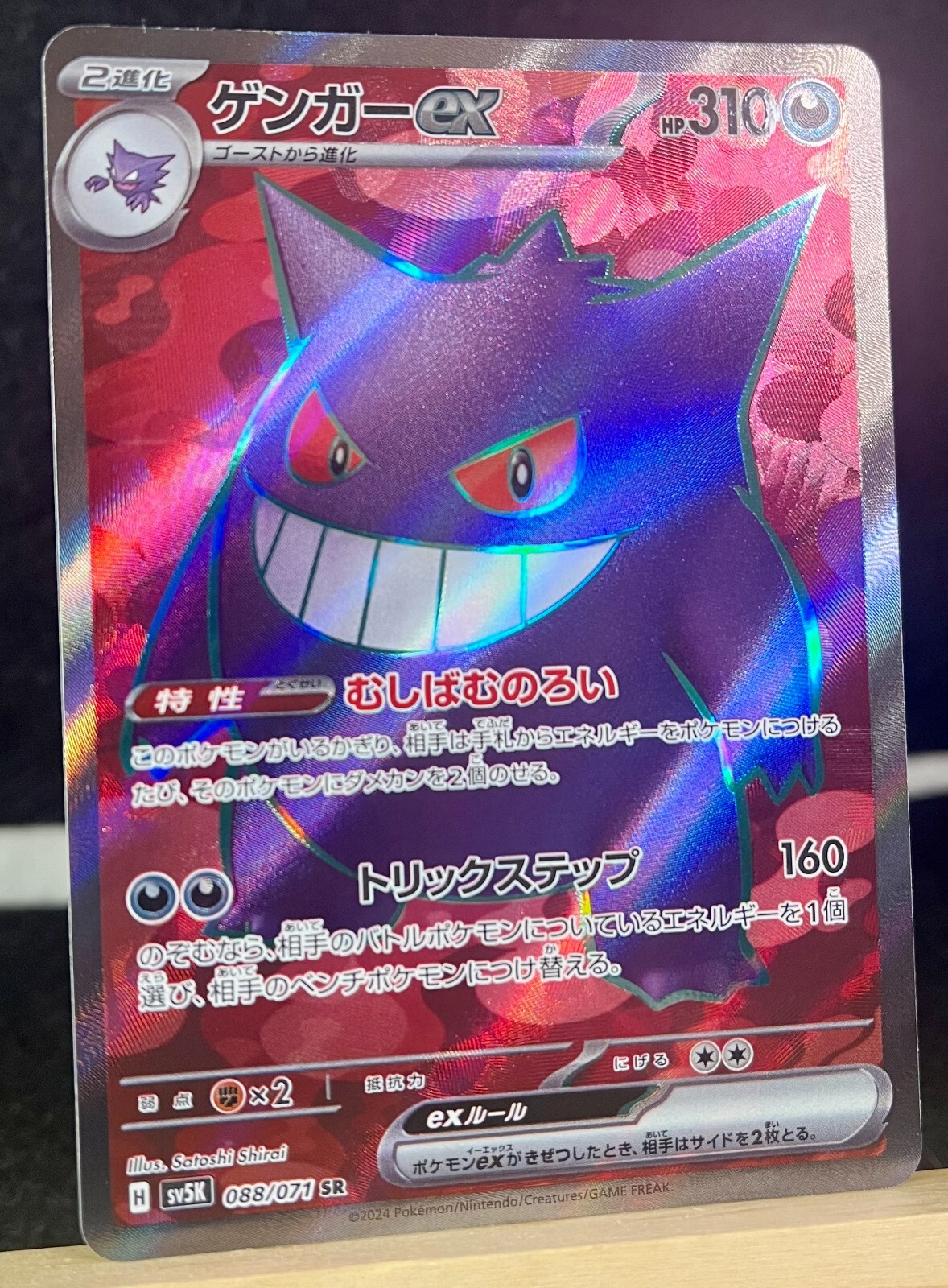 GENGAR Ex (088/071) SR - JAPANESE From Wild Forces 2024 Sv5k Visit my store! TOP RATED EBAY SELLER! FAST SHIPPING! Sorry, no international shipping! Your item is packed with care and shipped same day! ***I strive to provide 5-star service to all of my customers. If you receive 5-star service, please leave feedback indicating so. If you did not, for any reason, please message me and let me know so I can make it better for you. Your feedback is very important to me and allows me to continue offering great service to my customers. ***