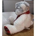 This product is a medium-sized (14-24 inches) teddy bear made by Gentle Treasures. It is white in color and comes with a scarf and hat. The bear is made of soft plush material, making it a great toy for children or a cute addition to any stuffed animal collection.