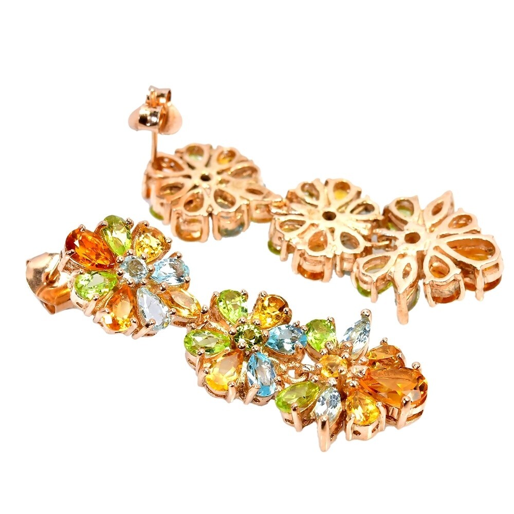 Genuine AAA Citrine Peridot Topaz Sterling Silver Flower Dangle Earrings