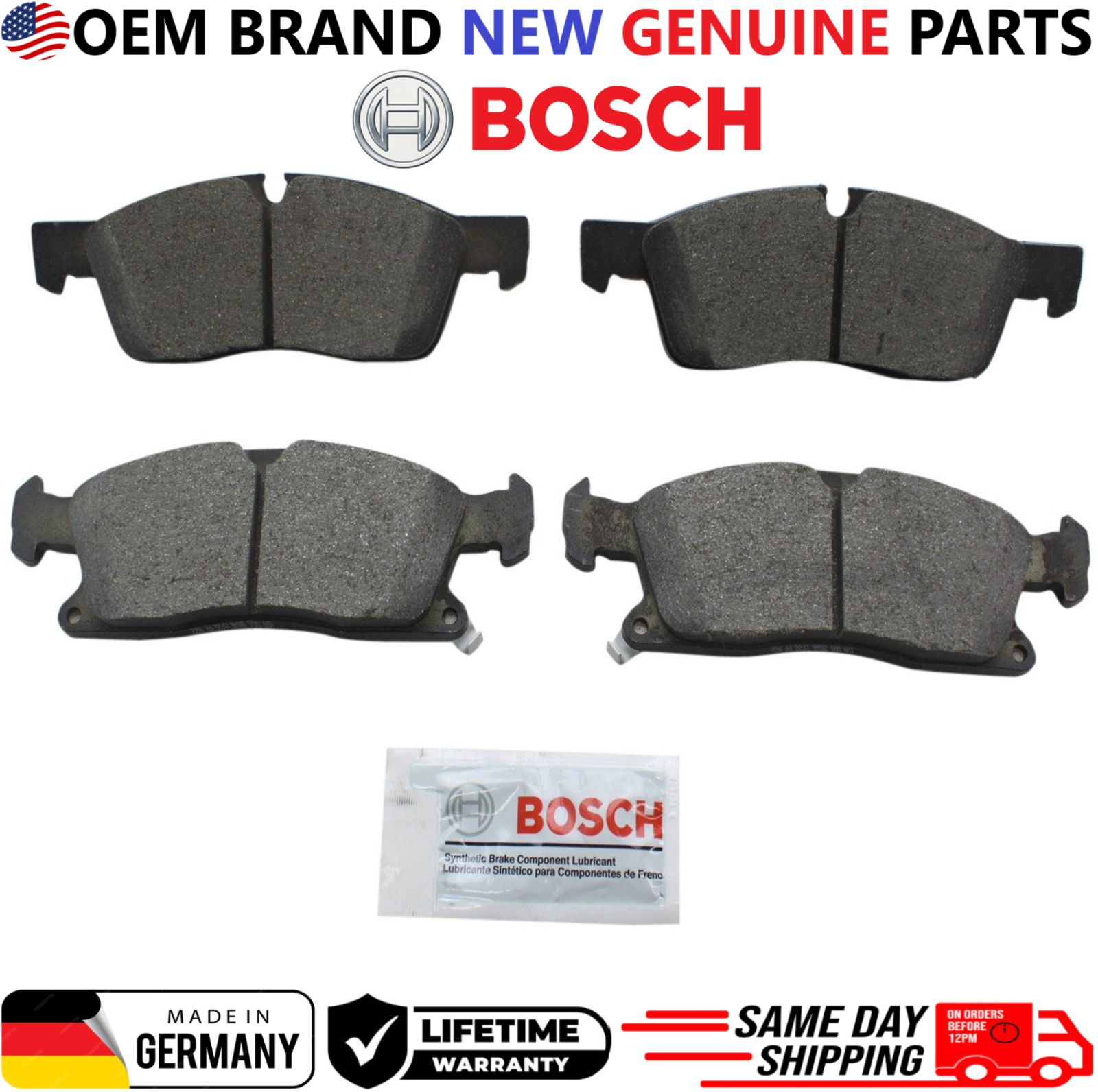 Replace worn rear brake pads with Bosch BE1455 Rear Brake Pad Set , engineered for quiet braking, low dust, and dependable stopping performance. This listing is for a REAR brake pad set only and includes hardware for direct OEM-style installation. Product Details Brand: Bosch Part Number: BE1455 Position: Rear Brake Pad Type: Ceramic Includes Hardware: Yes Condition: New OEM Part Numbers 00K68052369AA, 2AMV3369AC, 68052369AD, 00K68052369AC, 68052369AA, KV1012369AA, 2AMV3369AA, 68052369AC, V1012369AA Interchange / Cross Reference Numbers P37017N, BE1455H, 17-1455, 171455, ZD1455, BC1455, Z36-1455, Z361455, 16-1455, 161455, PC1455, PS1455AM, BE1455, ACT1455, 355042821, 25192.190.1, 251921901, 301.14550, 30114550, 103.14550, 10314550, 105.14550, 10514550, CFC1629, BP1455MS, ASP1455, EHT1455H, MGD1455CH, 1551-1904-10, 1551190410, MKD1629FM, 1600-1904-10, 1600190410, OEX1455, SBC1629, 1310-1904-10, 1310190410, AD1455, AD1629, SP1455PS, QC1455, 306.14550, 30614550, 1400-1904-10, 1400190410, SX1455, 607282, LD7282, 305.14550, 30514550, 308.14550, 30814550, 309.14550, 30914550, 1311-1904-10, 1311190410, 116307, 355019551, SGD1455C Vehicle Compatibility (REAR Only) 2015–2020 Dodge Charger 3.6L V6 REAR 2015–2020 Dodge Charger 5.7L V8 REAR 2015–2020 Dodge Charger 6.4L V8 REAR 2015–2020 Dodge Challenger 3.6L V6 REAR 2015–2020 Dodge Challenger 5.7L V8 REAR 2015–2020 Dodge Challenger 6.4L V8 REAR 2015–2020 Chrysler 300 3.6L V6 REAR 2015–2020 Chrysler 300 5.7L V8 REAR ⚠ Important Notice: Fits REAR brake systems only . Buyer must verify VIN, engine size, and rear brake configuration before purchase. Shipping: Handling time - 1 business day International, Priority, and Express shipping is also available. Warranty: We provide a LIFETIME WARRANTY for all our products (For Warranty claim please contact us) Returns and refunds: We accept returns within 60 days after receiving the package. All returned items must be unused and in the original packaging.