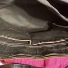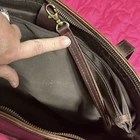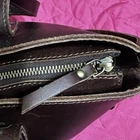 I'm not sure of the brand because it's not identified. It looks just like the brand Montana Hudson but does not say that on it anywhere. It is heavy duty leather and in awesome condition. It has heavy duty metal zippers. It has shoulder straps and a crossbody strap. Would carry a laptop or a tablet nicely. This bag is in fact brown not black like I said in the title.