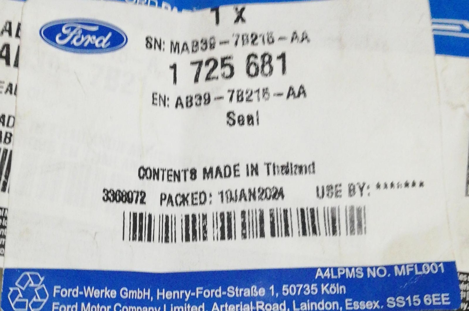 Genuine Ford - Seal - 1725681 please check for compatibility before purchasing please check for compatibility before purchasing Item specifics Condition New: A brand-new, unused, unopened and undamaged item in original retail packaging about the condition MPN 1725681 Manufacturer Part Number 1725681 Brand Ford Part Manufacturer Ford EAN Does not apply