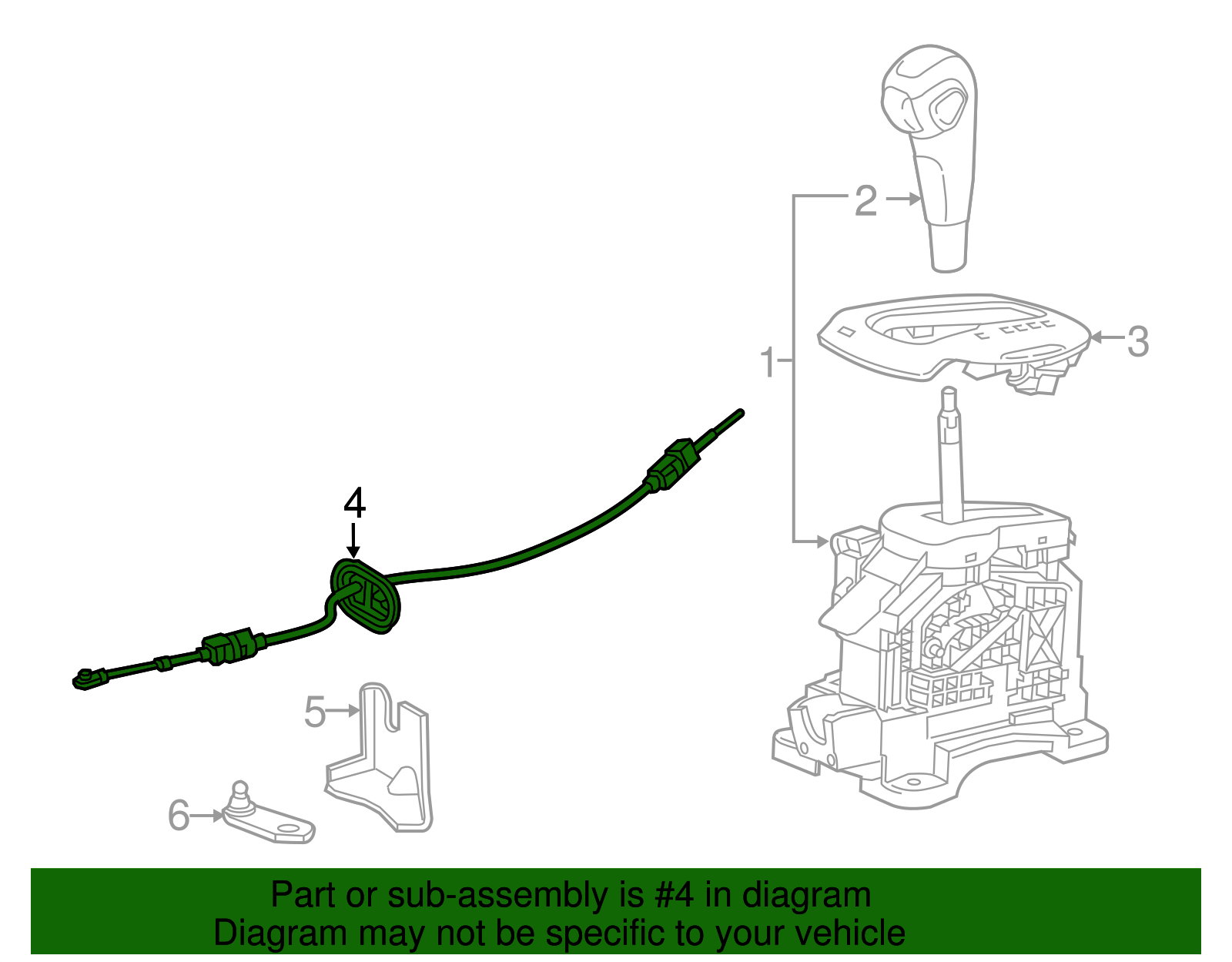 World Parts Direct Genuine GM Automatic Transmission Control Lever Cable 42594701 Part can be found as # 4 in the diagram above Product Description 2nd Design. This GM Genuine Part is designed, engineered, and tested to rigorous standards and is backed by General Motors Specifications Brand GM Manufacturer Part Number 42594701 SKU 42594701 Product Genuine GM Automatic Transmission Control Lever Cable 42594701 ONLY PART REFERENCE #4 ON THE DIAGRAM IS INCLUDED About Us WorldPartsDirect is a small, Texas based business located in the Dallas metroplex. There are about twenty of us that work tirelessly to get you the genuine, OEM parts you need at unbeatable prices. We pride ourselves in top quality customer service and our commitment to be the business we would want to shop with. We have one of the largest inventory networks in the country along with some of the most aggressive discounts. We love cars, and we love what we do! We hope you will love shopping with us , and we always welcome feedback on how we can make your shopping experience even better. Terms and Conditions Compatibility Guarantee (optional free service): Applies when you include your VIN during or before checkout. Simply click "Message to Seller" during checkout and include your VIN with any relevant details (ex: driver/ passenger side). Our fitment experts will confirm compatibility before shipping. If we determine that you purchased an incompatible part, we will correct your order if possible. If we cannot correct your order, we will notify you of the issue (ex: discontinued item) and give you the option to cancel. Part Authenticity and Warranty Guarantee: When you order from us, we guarantee that you will receive a genuine, OEM part. We do not stock anything aftermarket! Our parts are warrantied nationwide for 1 year at every Mopar (Chrysler/Dodge/Jeep/Ram) or General Motors (Chevrolet/Buick/GM/GMC) dealer in the country, depending on the brand of part you ordered. We are able to provide documentation that proves the validity of your purchase from our licensed dealership at anytime upon request. This documentation can be used to redeem this warranty if needed at the dealership of your choice and at no cost to you. Return Policy All of our products can be returned within 30 days. Please open a request for any of these reasons: Doesn't Fit Changed My Mind Found a Better Price Just Didn't Like it Ordered by Mistake The reason you pick has no impact on your refund amount, but it has a big impact on us as a seller. Choosing other reasons may delay the refund per an internal investigation and potential eBay appeal. If a part fails at anytime during the 1 year warranty period, any licensed new car dealership in the country that carries your brand of vehicle will replace the part for free. Simply request our dealer invoice for the part and provide it to your preferred dealer along with the defective part. Home • Newsletter Signup • Contact Us Copyright © 2025 World Parts Direct , All rights reserved. Solution by RevolutionParts, Inc. :: Design by OCDesignsOnline