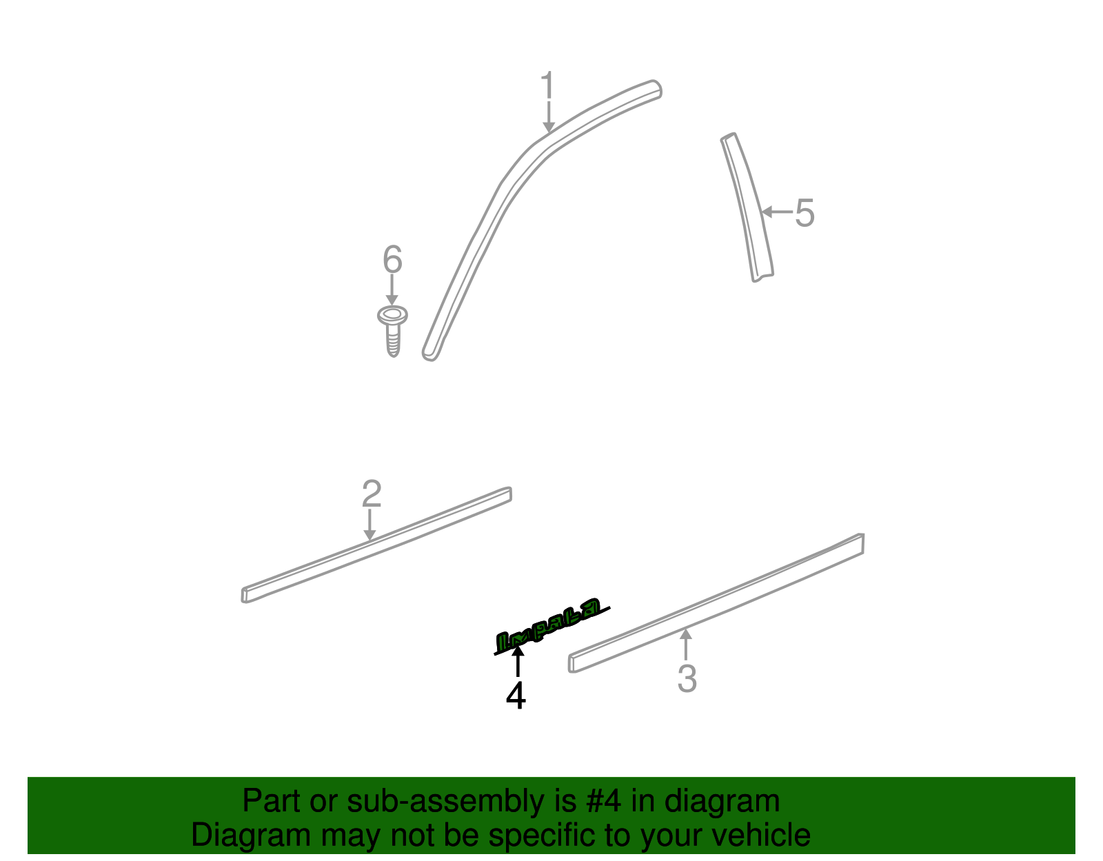 VRAY-GMC Genuine GM Berry Red Metallic Front Side Door Impala Name Plate 10325445 Part can be found as # 4 in the diagram above Product Description Impala, red. Brand, option, or model identifier which enhances the appearance of your vehicle This GM Genuine Part is designed, engineered, and tested to rigorous standards and is backed by General Motors Specifications Brand GM Manufacturer Part Number 10325445 SKU 10325445 Product Genuine GM Berry Red Metallic Front Side Door Impala Name Plate 10325445 ONLY PART REFERENCE #4 ON THE DIAGRAM IS INCLUDED WARNING : May cause cancer and reproductive harm. See www.P65Warnings.ca.gov for more info. Terms and Conditions Thank you for shopping with us. Please find our policies below. If you have any other questions, please don't hesitate to contact us. Shipping Terms In stock orders ship within 24 hours. Weekend orders will be processed the next business day. If a part is not in stock and must be ordered from the manufacturer, it usually takes 2-3 days to arrive to us and will be promptly shipped to you. Most of the orders are shipped complete within 2-3 business days. A few of the parts ordered from the manufacturer may take up to 5-6 business days to arrive and will shipped to you immediately. Depending upon location, ground shipments usually take 2-7 days. Your order may be shipped Overnight for an additional cost. Oversized shipments will be additional; you will be contacted prior to shipping for approval. We cannot guarantee transit times for ground and oversize orders. Shipping Carrier substitutions may be made at our determination in an attempt to reduce shipping cost to the customer. We do not ship internationally. In the unlikely event that a part has been placed on backorder or discontinued, we will do our best to try and find one for you as quickly as possible. We do not ship COD orders. Return Policy Contact us to arrange for any returns. A copy of the invoice will need to be included with the return. Parts must be resaleable and in the original packaging. We cannot take back used parts. We cannot take back installed or tried parts. Electrical parts are not returnable. We do reserve the right to refuse and return any parts we find have been installed, are used or do not meet the above criteria. Return request need to be within 30 days of receipt. Cancellation Policy An order or a portion of an order may be cancelled up until the time it is shipped and no longer in our possession. Home • Newsletter Signup • Contact Us Copyright © 2025 VRAY-GMC , All rights reserved. Solution by RevolutionParts, Inc. :: Design by OCDesignsOnline