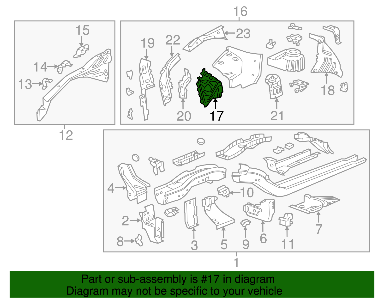 VRAY-GMC Genuine GM Front Driver Side Wheelhouse Front Panel 22972079 Part can be found as # 17 in the diagram above Product Description Shields vehicle from airborne debris thrown by the tires This GM Genuine Part is designed, engineered, and tested to rigorous standards and is backed by General Motors Collision parts are designed to help promote proper and safe repair Specifications Brand GM Manufacturer Part Number 22972079 SKU 22972079 Product Genuine GM Front Driver Side Wheelhouse Front Panel 22972079 ONLY PART REFERENCE #17 ON THE DIAGRAM IS INCLUDED WARNING : May cause cancer and reproductive harm. See www.P65Warnings.ca.gov for more info. Terms and Conditions Thank you for shopping with us. Please find our policies below. If you have any other questions, please don't hesitate to contact us. Shipping Terms In stock orders ship within 24 hours. Weekend orders will be processed the next business day. If a part is not in stock and must be ordered from the manufacturer, it usually takes 2-3 days to arrive to us and will be promptly shipped to you. Most of the orders are shipped complete within 2-3 business days. A few of the parts ordered from the manufacturer may take up to 5-6 business days to arrive and will shipped to you immediately. Depending upon location, ground shipments usually take 2-7 days. Your order may be shipped Overnight for an additional cost. Oversized shipments will be additional; you will be contacted prior to shipping for approval. We cannot guarantee transit times for ground and oversize orders. Shipping Carrier substitutions may be made at our determination in an attempt to reduce shipping cost to the customer. We do not ship internationally. In the unlikely event that a part has been placed on backorder or discontinued, we will do our best to try and find one for you as quickly as possible. We do not ship COD orders. Return Policy Contact us to arrange for any returns. A copy of the invoice will need to be included with the return. Parts must be resaleable and in the original packaging. We cannot take back used parts. We cannot take back installed or tried parts. Electrical parts are not returnable. We do reserve the right to refuse and return any parts we find have been installed, are used or do not meet the above criteria. Return request need to be within 30 days of receipt. Cancellation Policy An order or a portion of an order may be cancelled up until the time it is shipped and no longer in our possession. Home • Newsletter Signup • Contact Us Copyright © 2025 VRAY-GMC , All rights reserved. Solution by RevolutionParts, Inc. :: Design by OCDesignsOnline