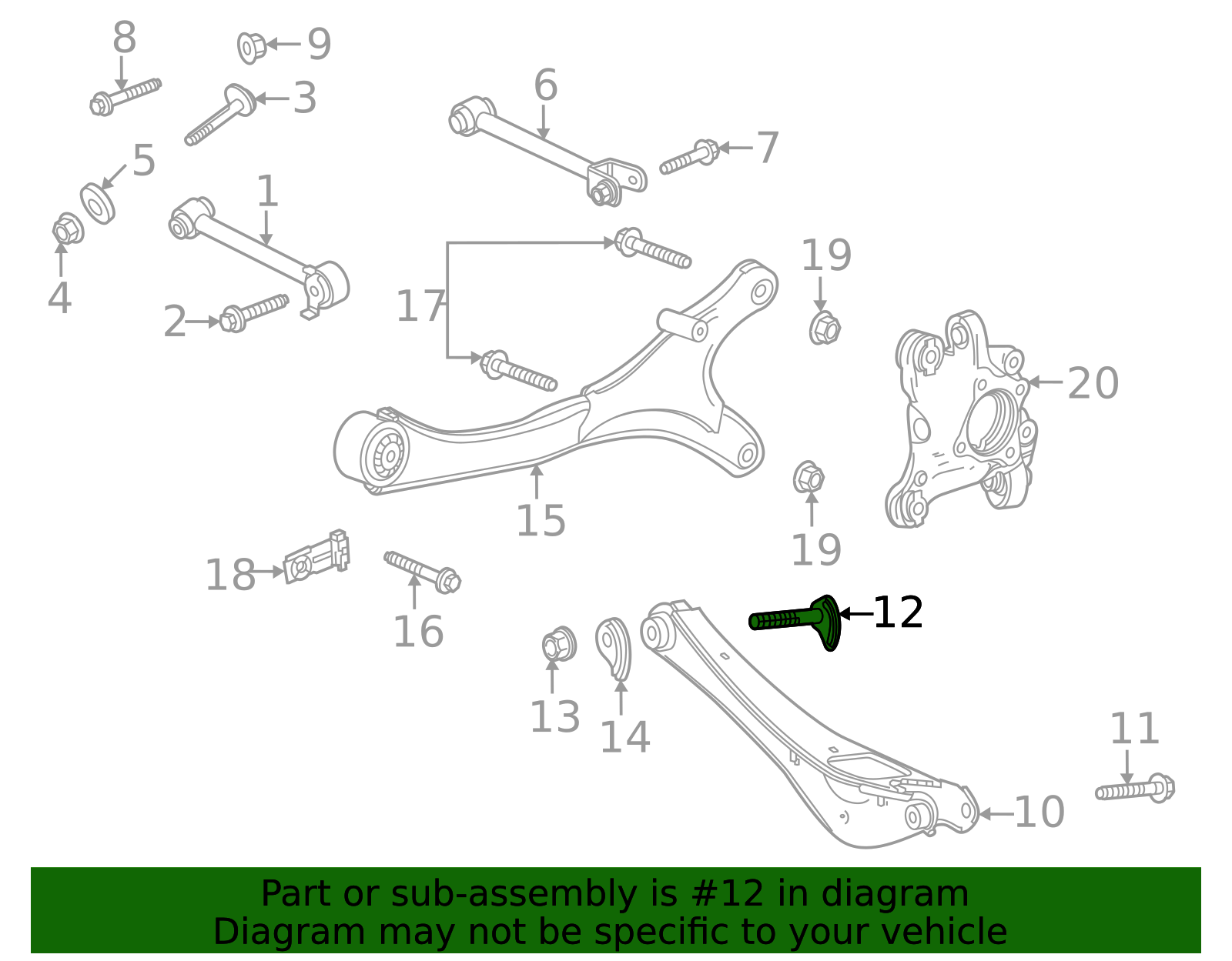 World Parts Direct Genuine GM Rear Driver Side Suspension Lower Control Arm Inner Bolt 11603678 Part can be found as # 12 in the diagram above Product Description Manufactured to GM OE specification for fit, form, and function Specifications Brand GM Manufacturer Part Number 11603678 SKU 11603678 Product Genuine GM Rear Driver Side Suspension Lower Control Arm Inner Bolt 11603678 ONLY PART REFERENCE #12 ON THE DIAGRAM IS INCLUDED About Us WorldPartsDirect is a small, Texas based business located in the Dallas metroplex. There are about twenty of us that work tirelessly to get you the genuine, OEM parts you need at unbeatable prices. We pride ourselves in top quality customer service and our commitment to be the business we would want to shop with. We have one of the largest inventory networks in the country along with some of the most aggressive discounts. We love cars, and we love what we do! We hope you will love shopping with us , and we always welcome feedback on how we can make your shopping experience even better. Terms and Conditions Compatibility Guarantee (optional free service): Applies when you include your VIN during or before checkout. Simply click "Message to Seller" during checkout and include your VIN with any relevant details (ex: driver/ passenger side). Our fitment experts will confirm compatibility before shipping. If we determine that you purchased an incompatible part, we will correct your order if possible. If we cannot correct your order, we will notify you of the issue (ex: discontinued item) and give you the option to cancel. Part Authenticity and Warranty Guarantee: When you order from us, we guarantee that you will receive a genuine, OEM part. We do not stock anything aftermarket! Our parts are warrantied nationwide for 1 year at every Mopar (Chrysler/Dodge/Jeep/Ram) or General Motors (Chevrolet/Buick/GM/GMC) dealer in the country, depending on the brand of part you ordered. We are able to provide documentation that proves the validity of your purchase from our licensed dealership at anytime upon request. This documentation can be used to redeem this warranty if needed at the dealership of your choice and at no cost to you. Return Policy All of our products can be returned within 30 days. Please open a request for any of these reasons: Doesn't Fit Changed My Mind Found a Better Price Just Didn't Like it Ordered by Mistake The reason you pick has no impact on your refund amount, but it has a big impact on us as a seller. Choosing other reasons may delay the refund per an internal investigation and potential eBay appeal. If a part fails at anytime during the 1 year warranty period, any licensed new car dealership in the country that carries your brand of vehicle will replace the part for free. Simply request our dealer invoice for the part and provide it to your preferred dealer along with the defective part. Home • Newsletter Signup • Contact Us Copyright © 2025 World Parts Direct , All rights reserved. Solution by RevolutionParts, Inc. :: Design by OCDesignsOnline