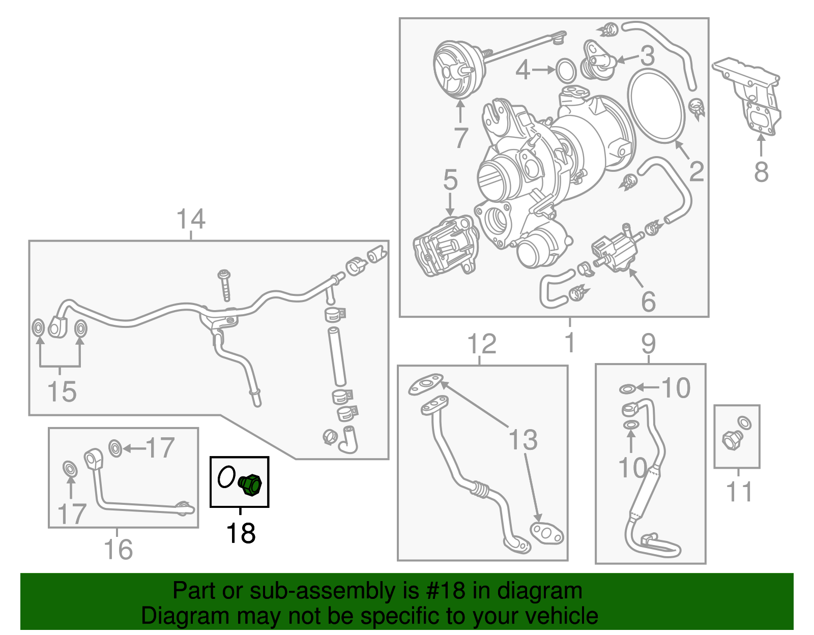 aaronchevrolet Genuine GM Turbocharger Coolant Return Pipe Fitting 12676405 Part can be found as # 18 in the diagram above Product Description 1.5L turbo. 3.0L twin-turbo, left side components. 3.0L twin-turbo, right side components, outlet. This GM Genuine Part is designed, engineered, and tested to rigorous standards and is backed by General Motors Specifications Brand GM Manufacturer Part Number 12676405 SKU 12676405 Product Genuine GM Turbocharger Coolant Return Pipe Fitting 12676405 Replaces 12659773, 12665854, 12679496 ONLY PART REFERENCE #18 ON THE DIAGRAM IS INCLUDED WARNING : May cause cancer and reproductive harm. See www.P65Warnings.ca.gov for more info. Terms and Conditions Thank you for shopping with us. Please find our policies below. If you have any other questions, please don't hesitate to contact us. Shipping Terms If you are located in Alaska, Hawaii or Puerto Rico Please contact us via eBay email to discuss shipping cost In stock orders ship within 24 hours. Weekend orders will be processed the next business day. If a part is not in stock and must be ordered from the manufacturer, it usually takes 2-3 days to arrive to us and will be promptly shipped to you. Most of the orders are shipped complete within 2-3 business days. A few of the parts ordered from the manufacturer may take up to 5-6 business days to arrive and will shipped to you immediately. Depending upon location, ground shipments usually take 2-7 days. Your order may be shipped Overnight for an additional cost. Oversized shipments will be additional; you will be contacted prior to shipping for approval. We cannot guarantee transit times for ground and oversize orders. Shipping Carrier substitutions may be made at our determination in an attempt to reduce shipping cost to the customer. We do not ship internationally. In the unlikely event that a part has been placed on backorder or discontinued, we will do our best to try and find one for you as quickly as possible. We do not ship COD orders. Return Policy Contact us to arrange for any returns. A copy of the invoice will need to be included with the return. Parts must be resaleable and in the original packaging. We cannot take back used parts. We cannot take back installed or tried parts. Electrical parts are not returnable. We do reserve the right to refuse and return any parts we find have been installed, are used or do not meet the above criteria. Return request need to be within 30 days of receipt. All returns are subject to inspection Shipping cost will not be refunded Cancellation Policy An order or a portion of an order may be cancelled up until the time it is shipped and no longer in our possession. Home • Newsletter Signup • Contact Us Copyright © 2025 aaronchevrolet , All rights reserved. Solution by RevolutionParts, Inc. :: Design by OCDesignsOnline
