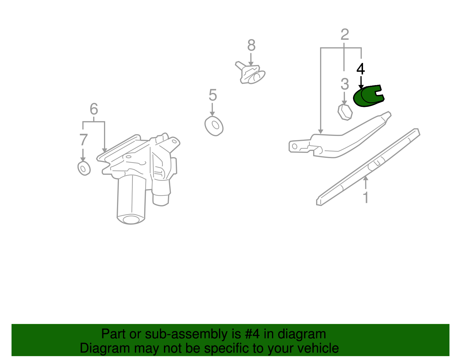 World Parts Direct Genuine GM Windshield Wiper Arm Cap 25800774 Part can be found as # 4 in the diagram above Product Description This GM Genuine Part is designed, engineered, and tested to rigorous standards and is backed by General Motors Specifications Brand GM Manufacturer Part Number 25800774 SKU 25800774 Product Genuine GM Windshield Wiper Arm Cap 25800774 ONLY PART REFERENCE #4 ON THE DIAGRAM IS INCLUDED About Us WorldPartsDirect is a small, Texas based business located in the Dallas metroplex. There are about twenty of us that work tirelessly to get you the genuine, OEM parts you need at unbeatable prices. We pride ourselves in top quality customer service and our commitment to be the business we would want to shop with. We have one of the largest inventory networks in the country along with some of the most aggressive discounts. We love cars, and we love what we do! We hope you will love shopping with us , and we always welcome feedback on how we can make your shopping experience even better. Terms and Conditions Compatibility Guarantee (optional free service): Applies when you include your VIN during or before checkout. Simply click "Message to Seller" during checkout and include your VIN with any relevant details (ex: driver/ passenger side). Our fitment experts will confirm compatibility before shipping. If we determine that you purchased an incompatible part, we will correct your order if possible. If we cannot correct your order, we will notify you of the issue (ex: discontinued item) and give you the option to cancel. Part Authenticity and Warranty Guarantee: When you order from us, we guarantee that you will receive a genuine, OEM part. We do not stock anything aftermarket! Our parts are warrantied nationwide for 1 year at every Mopar (Chrysler/Dodge/Jeep/Ram) or General Motors (Chevrolet/Buick/GM/GMC) dealer in the country, depending on the brand of part you ordered. We are able to provide documentation that proves the validity of your purchase from our licensed dealership at anytime upon request. This documentation can be used to redeem this warranty if needed at the dealership of your choice and at no cost to you. Return Policy All of our products can be returned within 30 days. Please open a request for any of these reasons: Doesn't Fit Changed My Mind Found a Better Price Just Didn't Like it Ordered by Mistake The reason you pick has no impact on your refund amount, but it has a big impact on us as a seller. Choosing other reasons may delay the refund per an internal investigation and potential eBay appeal. If a part fails at anytime during the 1 year warranty period, any licensed new car dealership in the country that carries your brand of vehicle will replace the part for free. Simply request our dealer invoice for the part and provide it to your preferred dealer along with the defective part. Home • Newsletter Signup • Contact Us Copyright © 2025 World Parts Direct , All rights reserved. Solution by RevolutionParts, Inc. :: Design by OCDesignsOnline