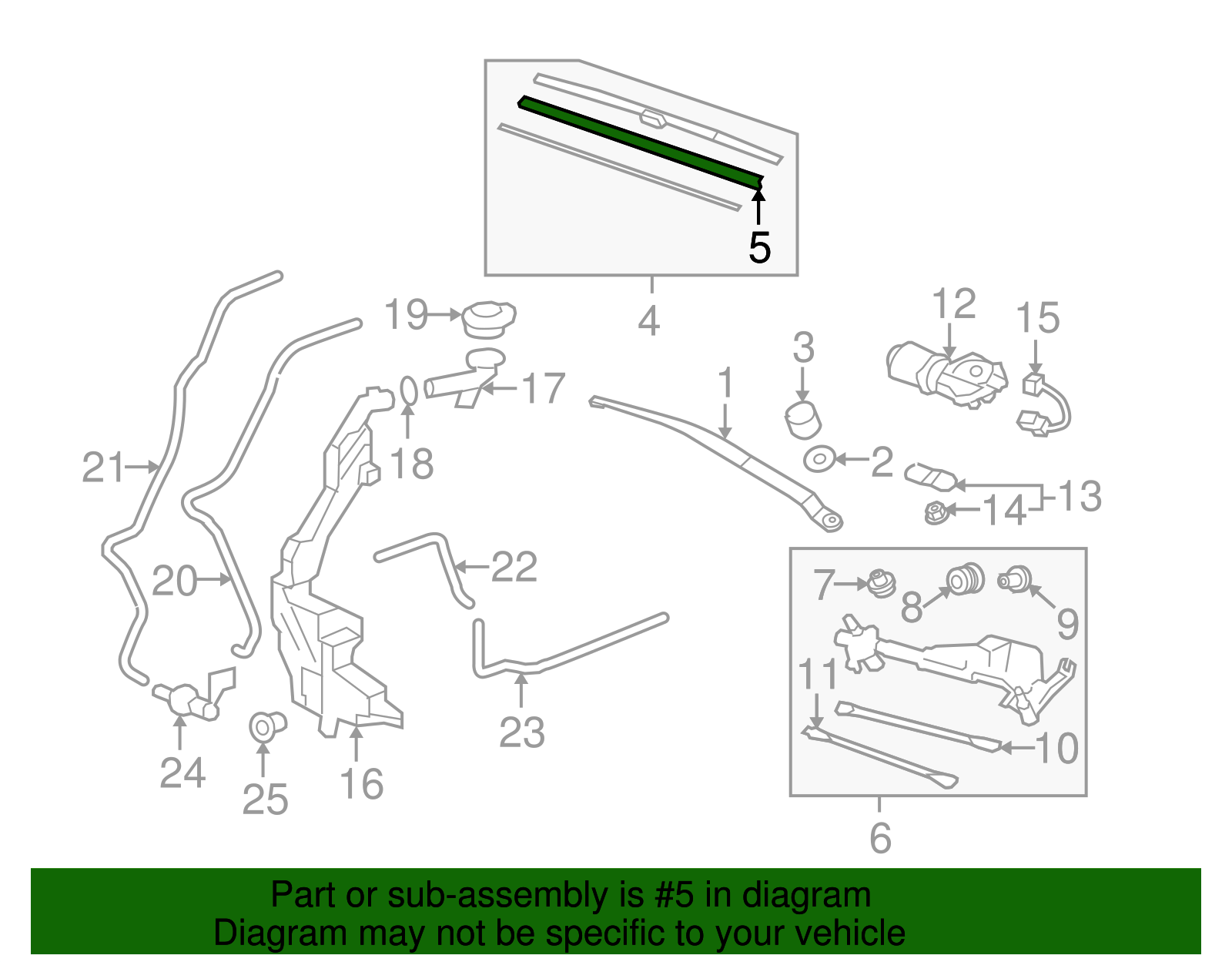 hillcountryhondaparts Genuine Honda Wiper Blade Refill 76632-SWA-J02 Part can be found as # 5 in the diagram above Genuine Honda Parts Product Description Japan built. Specifications Brand Honda Manufacturer Part Number 76632-SWA-J02 SKU 76632-SWA-J02 Product Genuine Honda Wiper Blade Refill 76632-SWA-J02 Replaces 76632-SWA-J01 ONLY PART REFERENCE #5 ON THE DIAGRAM IS INCLUDED WARNING : May cause cancer and reproductive harm. See www.P65Warnings.ca.gov for more info. Thank you for your genuine Honda parts order! Samuel Contreras Hill Country Honda Terms and Conditions Thank you for shopping with us. Please find our policies below. If you have any other questions, please don't hesitate to contact us. Shipping Terms In stock orders ship within 24 hours. Weekend orders will be processed the next business day. If a part is not in stock and must be ordered from the manufacturer, it usually takes 2-3 days to arrive to us and will be promptly shipped to you. Most of the orders are shipped complete within 2-3 business days. A few of the parts ordered from the manufacturer may take up to 5-6 business days to arrive and will shipped to you immediately. Depending upon location, ground shipments usually take 2-7 days. Your order may be shipped Overnight for an additional cost. Oversized shipments will be additional; you will be contacted prior to shipping for approval. We cannot guarantee transit times for ground and oversize orders. Shipping Carrier substitutions may be made at our determination in an attempt to reduce shipping cost to the customer. We do not ship internationally. In the unlikely event that a part has been placed on backorder or discontinued, we will do our best to try and find one for you as quickly as possible. We do not ship COD orders. Return Policy Contact us to arrange for any returns. A copy of the invoice will need to be included with the return. Parts must be resaleable and in the original packaging. We cannot take back used parts. We cannot take back installed or tried parts. Electrical parts are not returnable. We do reserve the right to refuse and return any parts we find have been installed, are used or do not meet the above criteria. Return request need to be within 15 days of receipt. Cancellation Policy An order or a portion of an order may be cancelled up until the time it is shipped and no longer in our possession. Home • Newsletter Signup • Contact Us Copyright © 2025 hillcountryhondaparts , All rights reserved. Solution by RevolutionParts, Inc. :: Design by OCDesignsOnline