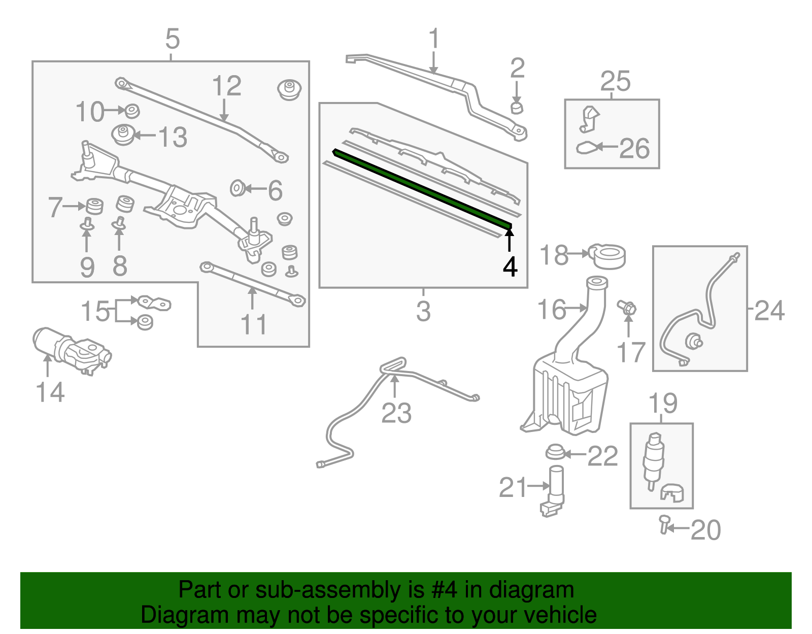 hillcountryhondaparts Genuine Honda Wiper Blade Refill 76632-SZA-A01 Part can be found as # 4 in the diagram above Genuine Honda Parts Specifications Brand Honda Manufacturer Part Number 76632-SZA-A01 SKU 76632-SZA-A01 Product Genuine Honda Wiper Blade Refill 76632-SZA-A01 ONLY PART REFERENCE #4 ON THE DIAGRAM IS INCLUDED WARNING : May cause cancer and reproductive harm. See www.P65Warnings.ca.gov for more info. Thank you for your genuine Honda parts order! Samuel Contreras Hill Country Honda Terms and Conditions Thank you for shopping with us. Please find our policies below. If you have any other questions, please don't hesitate to contact us. Shipping Terms In stock orders ship within 24 hours. Weekend orders will be processed the next business day. If a part is not in stock and must be ordered from the manufacturer, it usually takes 2-3 days to arrive to us and will be promptly shipped to you. Most of the orders are shipped complete within 2-3 business days. A few of the parts ordered from the manufacturer may take up to 5-6 business days to arrive and will shipped to you immediately. Depending upon location, ground shipments usually take 2-7 days. Your order may be shipped Overnight for an additional cost. Oversized shipments will be additional; you will be contacted prior to shipping for approval. We cannot guarantee transit times for ground and oversize orders. Shipping Carrier substitutions may be made at our determination in an attempt to reduce shipping cost to the customer. We do not ship internationally. In the unlikely event that a part has been placed on backorder or discontinued, we will do our best to try and find one for you as quickly as possible. We do not ship COD orders. Return Policy Contact us to arrange for any returns. A copy of the invoice will need to be included with the return. Parts must be resaleable and in the original packaging. We cannot take back used parts. We cannot take back installed or tried parts. Electrical parts are not returnable. We do reserve the right to refuse and return any parts we find have been installed, are used or do not meet the above criteria. Return request need to be within 15 days of receipt. Cancellation Policy An order or a portion of an order may be cancelled up until the time it is shipped and no longer in our possession. Home • Newsletter Signup • Contact Us Copyright © 2025 hillcountryhondaparts , All rights reserved. Solution by RevolutionParts, Inc. :: Design by OCDesignsOnline
