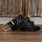 Genuine Leather Belts for Women Handmade Woven Top Grain Cowhide Pin Buckle