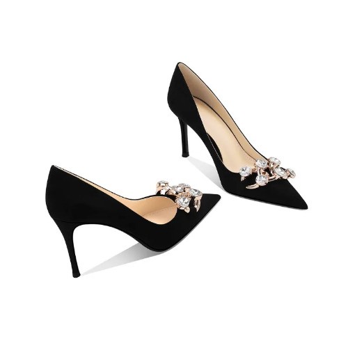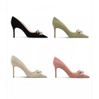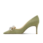 Elegant Green Deep Daim High Heels Pointed Strap Pumps