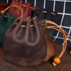 DESCRIPTION: Premium quality crazy horse leather coin purses Unique and simple design Size: 12*11cm Weight : Approx.35g Available in Brown, Coffee, Black, Green, Blue, Wine Red One compartments pocket for bills, and coins Appropriate for children, men and women Convinient design for Drawstring Pouch The lovely texture and easy-to-incorporate color furnishes a timeless Classic look that will never go out of style