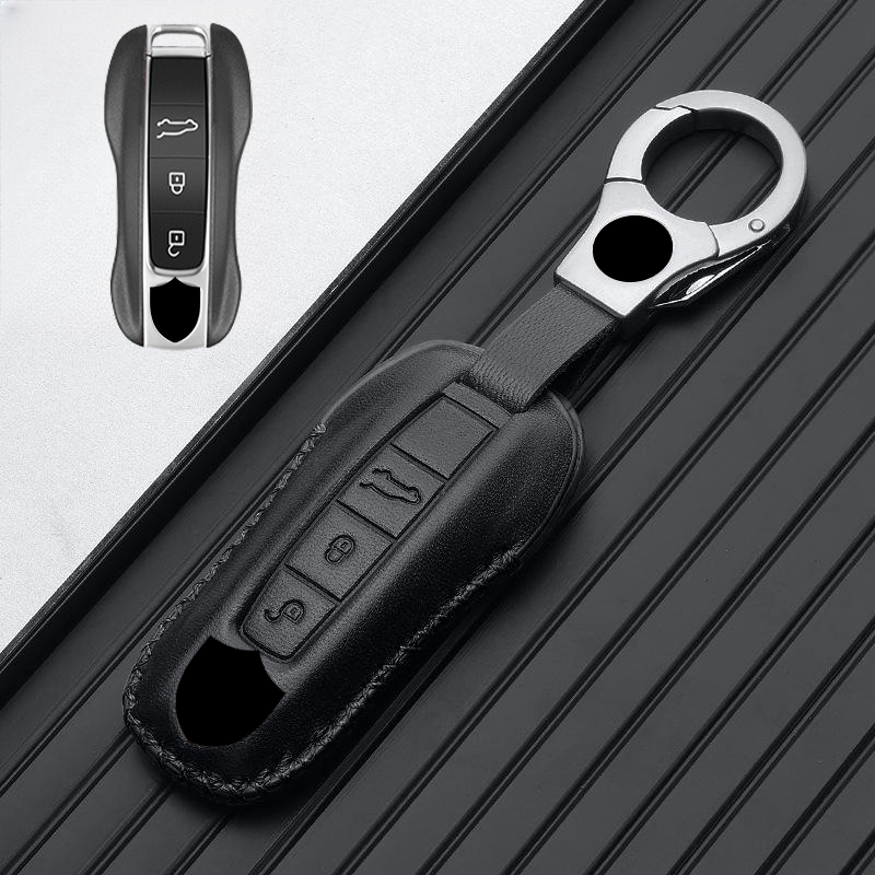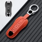 Genuine Leather Car Key Case Cover For Porsche Cayenne Panamera 911 Macan Taycan