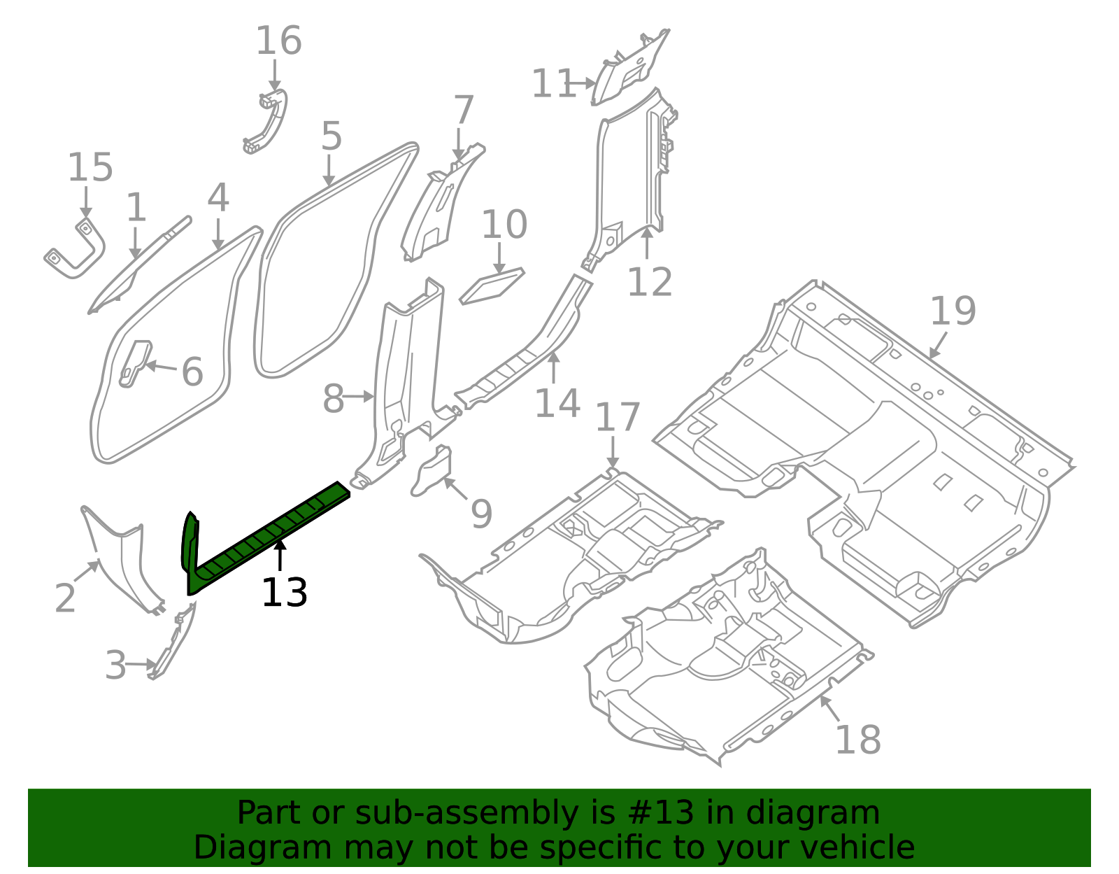 nissanpartscentral Genuine Nissan Scuff Plate 769B5-EA002 Part can be found as # 13 in the diagram above Genuine Nissan Parts Product Description King cab body side trim. front graphite. Specifications Brand Nissan Manufacturer Part Number 769B5-EA002 SKU 769B5-EA002 Product Genuine Nissan Scuff Plate 769B5-EA002 ONLY PART REFERENCE #13 ON THE DIAGRAM IS INCLUDED Thank you for shopping with us. Please find our policies below. If you have any other questions, please don't hesitate to contact us. Visit up at ( nissanpartscentral ) Contact us - 580_768_7446 9 am-5 pm Monday-Friday (Closed Weekends & Holidays) About Us Visit up at ( nissanpartscentral ) Contact us - 580_768_7446 9 am-5 pm Monday-Friday (Closed Weekends & Holidays) Terms and Conditions Thank you for shopping with us. Please find our policies below. If you have any other questions, please don't hesitate to contact us. Visit up at ( nissanpartscentral ) Contact us - 580_768_7446 9 am-5 pm Monday-Friday (Closed Weekends & Holidays) Shipping Terms In stock orders ship within 24 hours. Weekend orders will be processed the next business day. If a part is not in stock and must be ordered from the manufacturer, it usually takes 2-3 days to arrive to us and will be promptly shipped to you. Most of the orders are shipped complete within 2-3 business days. A few of the parts ordered from the manufacturer may take up to 5-6 business days to arrive and will shipped to you immediately. Depending upon location, ground shipments usually take 2-7 days. Your order may be shipped Overnight for an additional cost. Oversized shipments will be additional; you will be contacted prior to shipping for approval. We cannot guarantee transit times for ground and oversize orders. Shipping Carrier substitutions may be made at our determination in an attempt to reduce shipping cost to the customer. We do not ship internationally. In the unlikely event that a part has been placed on backorder or discontinued, we will do our best to try and find one for you as quickly as possible. We do not ship COD orders. Return Policy Contact us to arrange for any returns. A copy of the invoice will need to be included with the return. Parts must be resaleable and in the original packaging. We cannot take back used parts. We cannot take back installed or tried parts. Electrical parts are not returnable. We do reserve the right to refuse and return any parts we find have been installed, are used or do not meet the above criteria. Return request need to be within 30 days of receipt. Cancellation Policy An order or a portion of an order may be cancelled up until the time it is shipped and no longer in our possession. Home • Newsletter Signup • Contact Us Copyright © 2026 nissanpartscentral , All rights reserved. Solution by RevolutionParts, Inc. :: Design by OCDesignsOnline