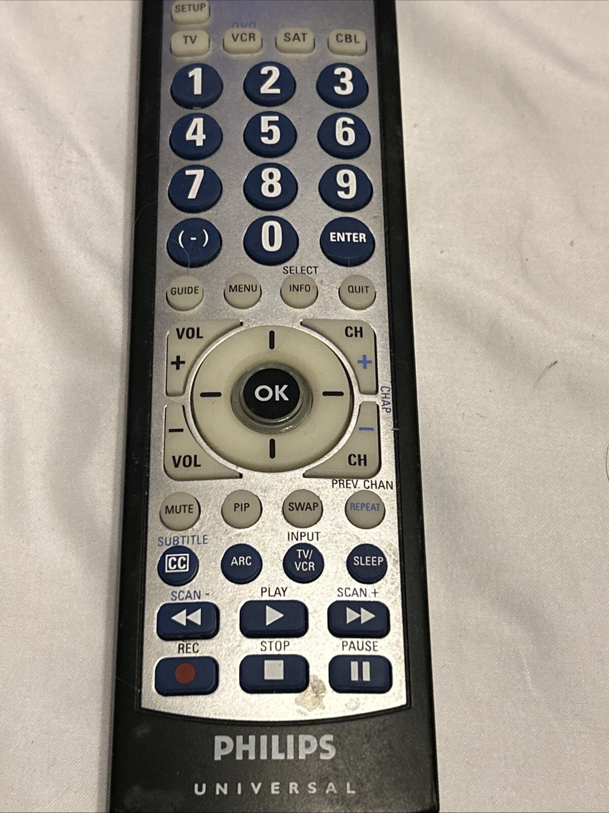 This is a genuine OEM Philips universal remote control with model number CLO35A R1. It is compatible with various Philips and universal TV models, and has a wireless range of 5-10 meters. The remote uses 2 AA batteries and has a sleek multicolor design. It measures 8 inches in length and 2.5 inches in width. This remote control is perfect for those who need a reliable and functional replacement for their old remote.