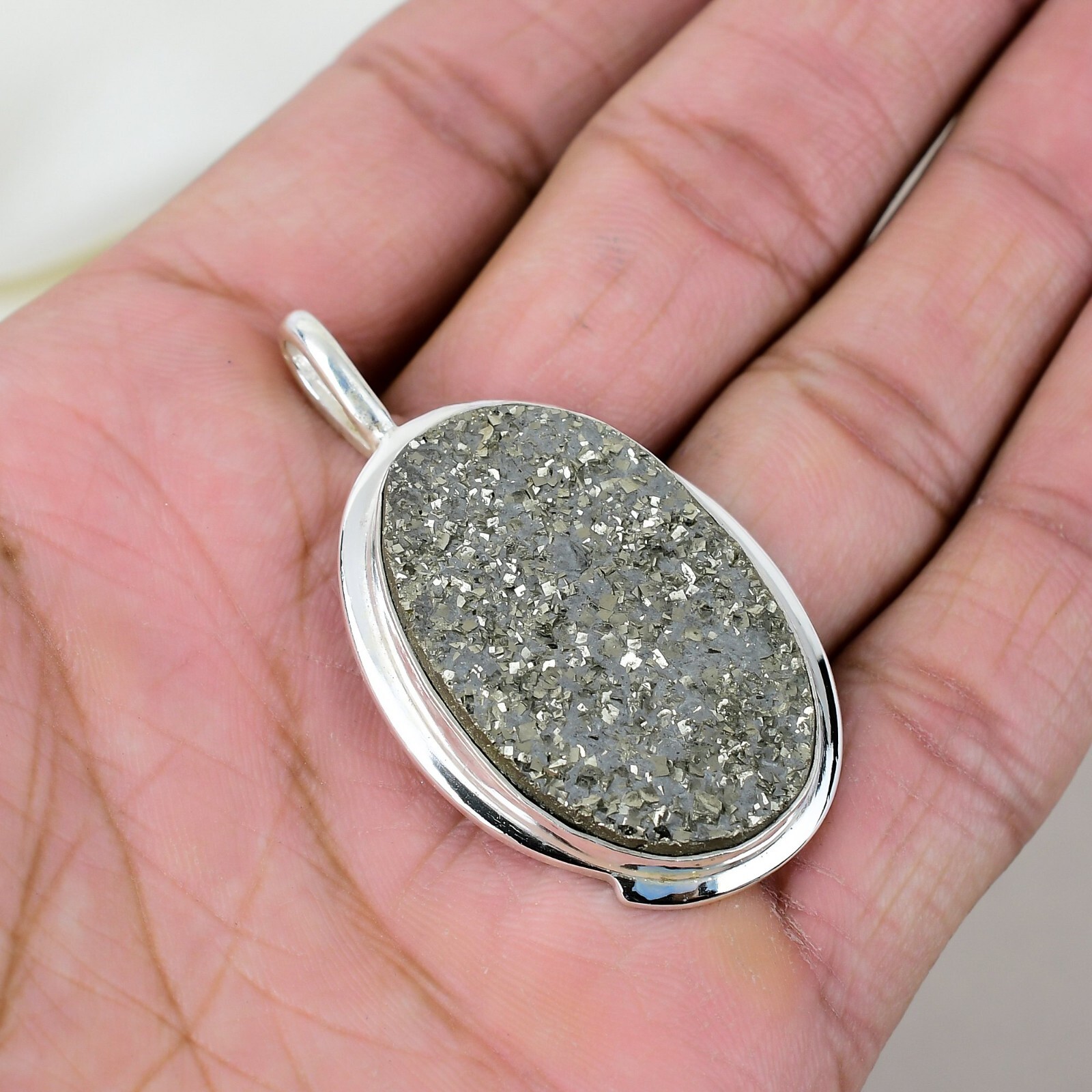Genuine Pyrite Druzy Gemstone 925 Sterling Silver Top Quality Pendant Jewelry