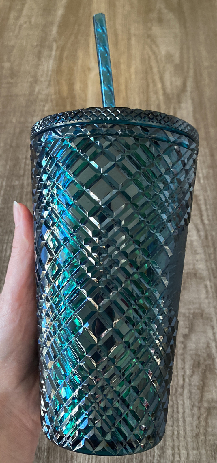 Genuine Starbucks 2021 Holiday Studded Jeweled Tumbler Blue Green 16oz. In good used conditon. There is a small chip near the bottom of the cup. See photos above.