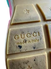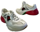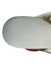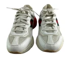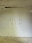 Handsome men Gucci sneakers with great detail, lined in leather with iconic red and green stripes. Shoes are in good condition and measure 4"8 at its widest base and 12"5 from heel to toe on the exterior and are size 9 Gucci and 9.5 US. Shoes are not new and are very comfortable with no tears and the rubber under soles are in excellent condition. There are a few scuffs on exterior red back side and a few small marks on exterior leather. 100% genuine Gucci made in Italy and sneakers have been authenticated. I SHIP WORLDWIDE I want to stress that item is vintage which means it's not new. All my customers are very important to me and I believe communication is very important. I do not sell or encourage any one to sell fakes. I do gladly combine shipping and items returned to me by the post office will be charged additional postage upon being reshipped. Any questions please email me and I will be more than happy to answer all your questions. No refunds. Contact Items are sold as is and if you have an questions please let me know before you purchase item. Shipping Shipping is done with USPS priority mail within the U.S. and shipping takes 4-5 business days from the date of payment. Please note I do combine shipping. If you have any questions please feel free to email me.
