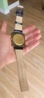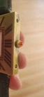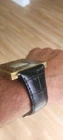 100% Authentic Cartier with enamel Roman numerals and red cabochon crown. improvised lugs, made from a genuine vintage Cartier mini desk clock 50x50mm case has pictured is aged/patina and scratched and never been polished and not working sold as is and sale is final! fun to wear as a wristwatch and can still be used as a desk clock with the band on it please read and see all large size pictures and the size and make sure of your purchase