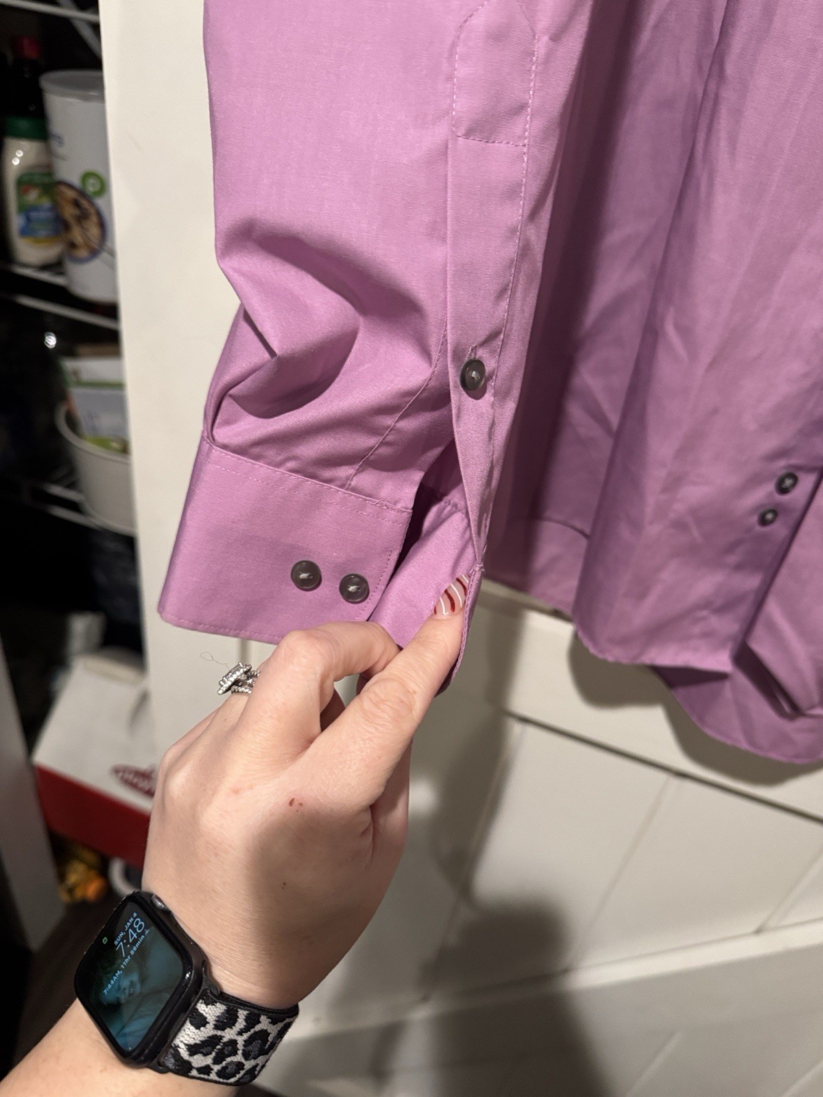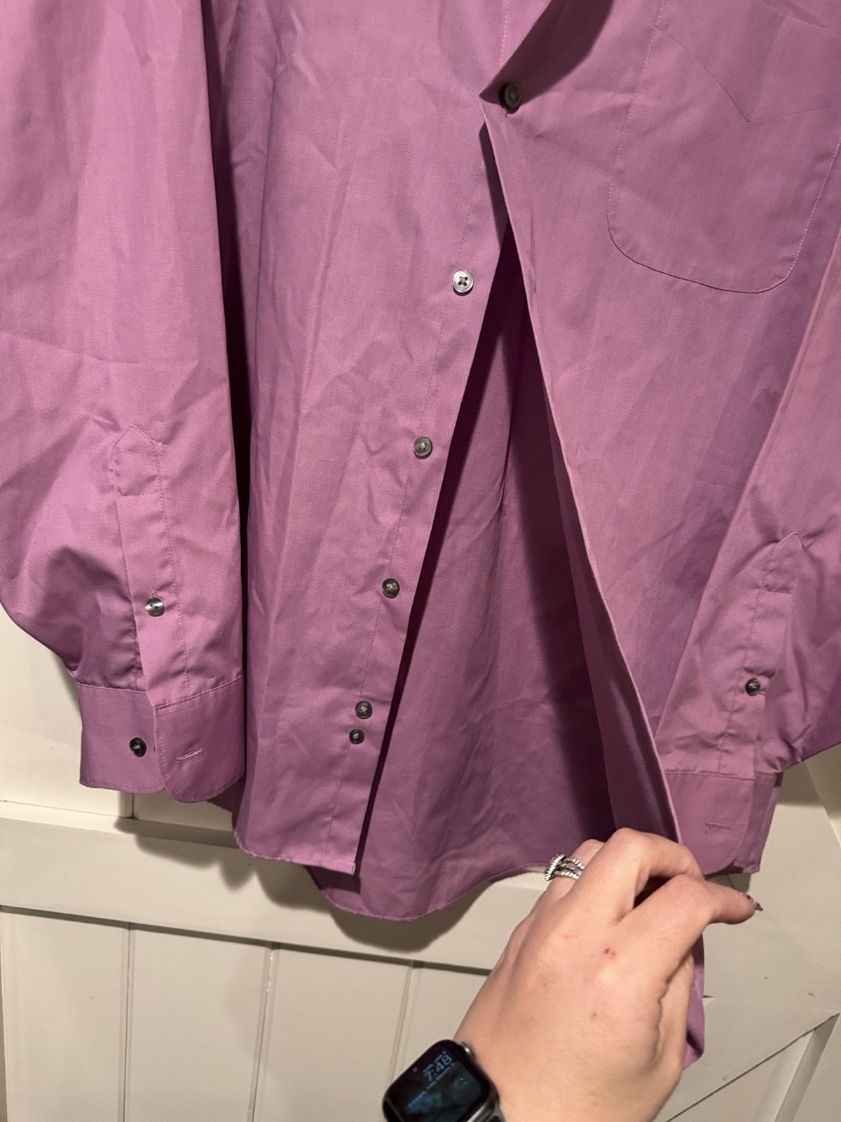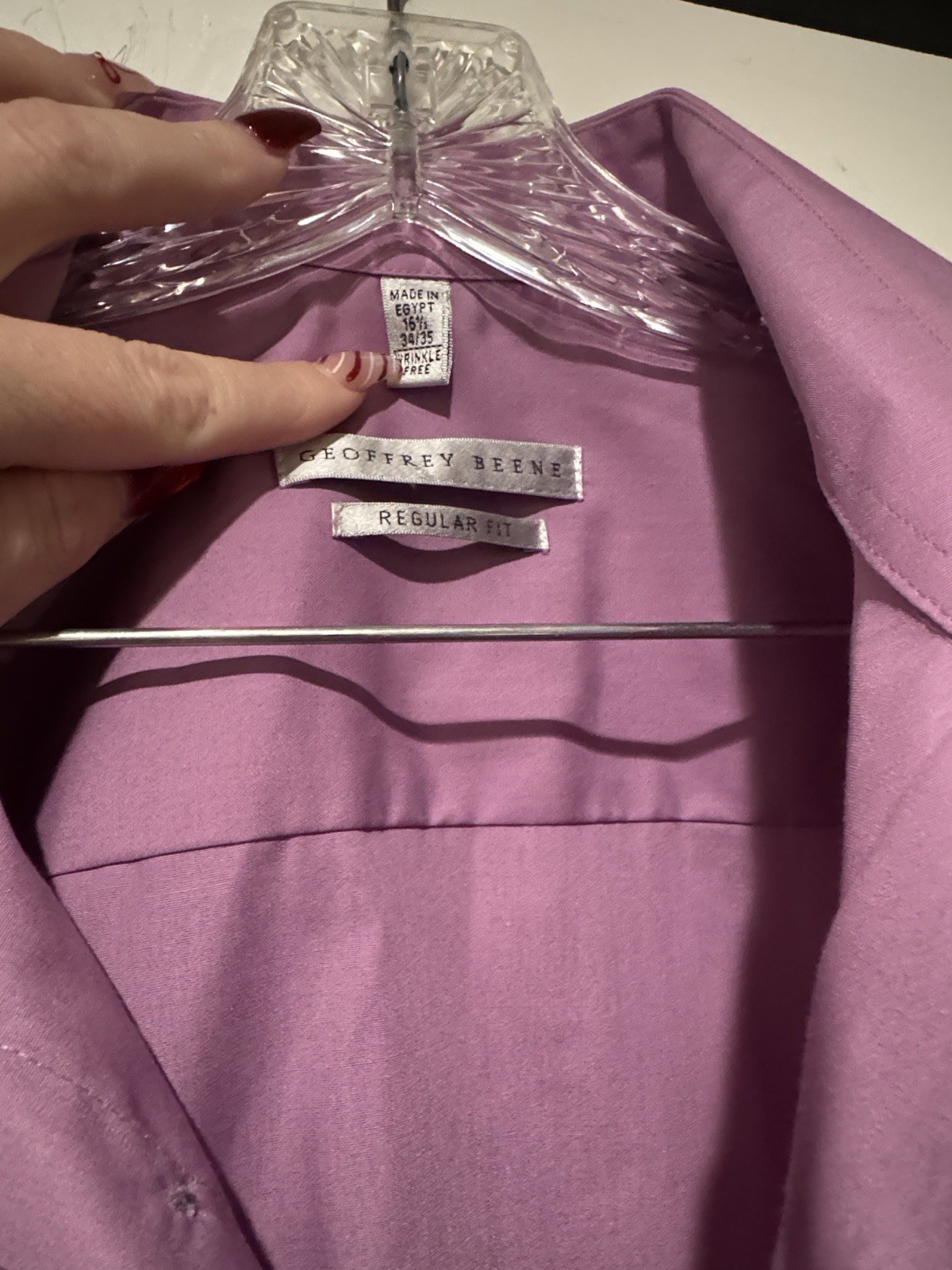 The Geoffrey Beene Men’s Lavender Button Down shirt is a stylish and versatile addition to any man's wardrobe. This shirt features a classic long sleeve design with a button-down collar, making it suitable for both casual and dressy occasions. The lavender color adds a pop of personality to your outfit, while the size 16.5 ensures a comfortable and tailored fit. Made by a reputable brand like Geoffrey Beene, you can trust in the quality and craftsmanship of this shirt.