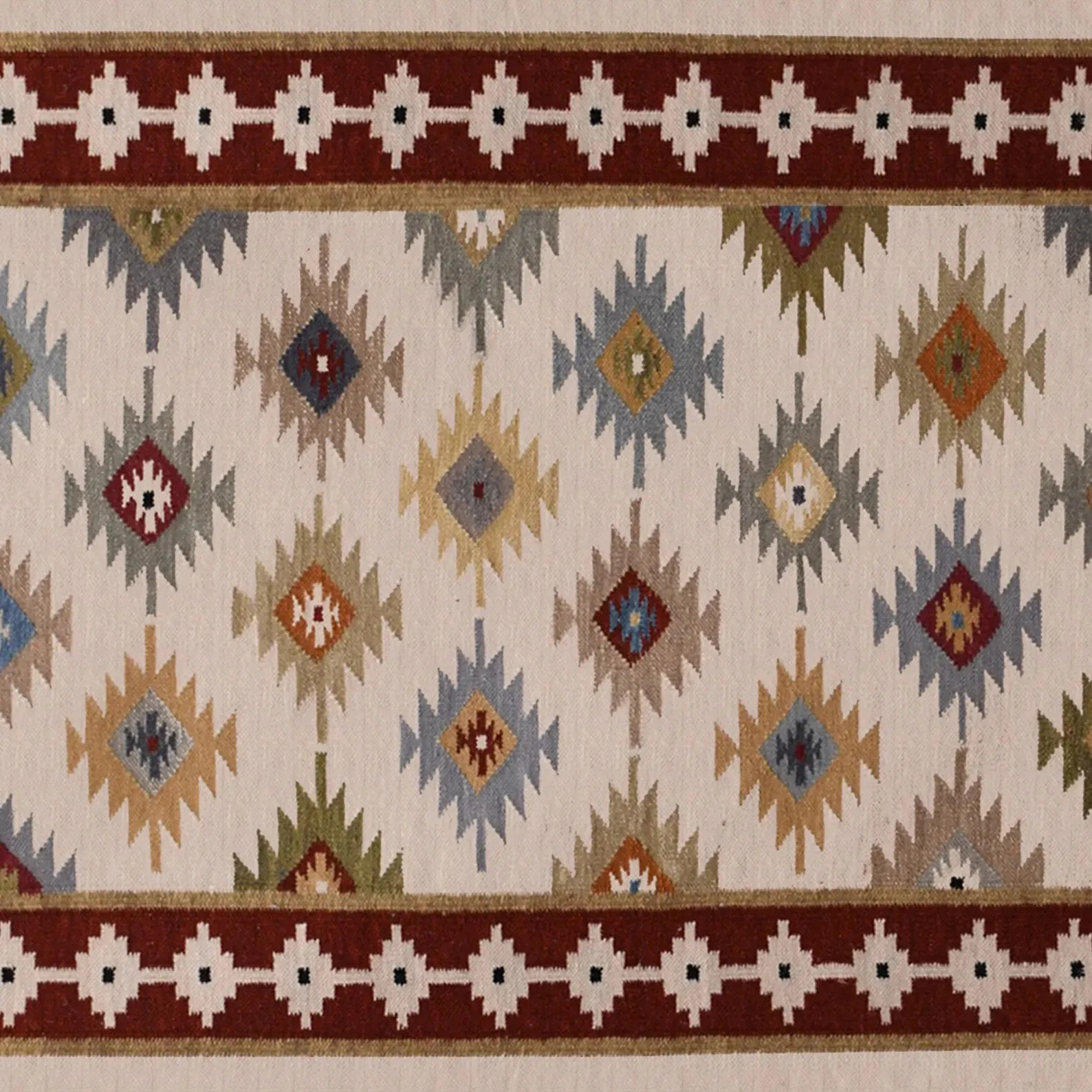 Hand Knotted Cotton/Wool Dhurrie Rug Color Red and White Handmade Carpet Rug
