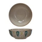 This Geometric Stoneware Bowl is a celebration of color and pattern, where the earth meets the sea in a dance of green and blue hues. The intricate geometric design, reminiscent of ancient mosaics, brings a touch of the exotic to the table, while the bronzed background adds a touch of warmth and depth. It's a piece that doesn't just hold food; it holds the gaze, inviting admiration and conversation. It measures 9.5 inches in diameter and 3.75 inches in height, providing a generous canvas for its intricate design. Whether filled with fresh fruits or left empty, it stands as a testament to the beauty that functional art can bring to everyday life. In a world that craves authenticity, this bowl is a genuine expression of global craftsmanship and style. A small, round stoneware bowl that captivates with a green and blue geometric pattern set against a bronzed background An artistic statement, it complements Boho, Scandinavian, Rustic, and Global decor styles with its vibrant, earthy palette This bowl is ideal for those who appreciate the art of presentation, serving as a striking vessel for varied creations Made of durable stoneware, this bowl is a harmonious blend of functionality and visual appeal, with a pattern that tells a story 9.5” Diameter x 3.75” H