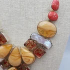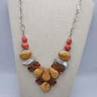 Geometric Teardrop Square Biwa Pearl Lucite Silver Plate Bib Bezel Set Necklace Statement Orange Browns White Marked .925