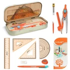 Package Includes: 1 Ruler (6 inches), 1 Set Square (30°/60°), 1 Set Square (45°), 1 Metal Protractor, 1 Mechanical Pencil (0.5 mm), 1 Pack of 0.5 mm Pencil Lead, 1 Eraser, 1 Manual Pencil Sharpener, 1 Compass, 1 Pencil for Compass The set also includes a math card that contains most of the important mathematical formulas for quick reference. It helps students and adults remember these formulas more easily It serves as an excellent Geometry Set for teachers and students, suitable for use in school, office, home, or on the go. This comprehensive tool set is perfect for students, teachers, math experts, architects, engineers, artists, and designers at any level The set comes in a specially designed iron box, providing convenient storage and easy portability. It helps reduce clutter in daily work and students' study areas. The cute design will make math more enjoyable for kids This tool set is a great choice for both teachers and students. It also makes a perfect gift for family and friends, whether as a school season gift or a Christmas gift. Suitable for children aged 6 and up