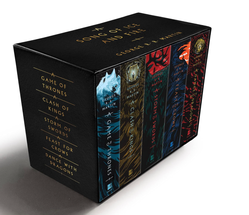 Immerse yourself in the epic world of Westeros with George R. R. Martin’s A Game of Thrones 5-Book Boxed Set , the internationally acclaimed fantasy saga that inspired the award-winning HBO series Game of Thrones . This beautifully packaged set includes the first five novels in the legendary A Song of Ice and Fire series—perfect for collectors, readers, and fans of epic storytelling. Explore a richly detailed world filled with political intrigue, unforgettable characters, heroic quests, and shocking twists. From the icy North to the sprawling capital of King’s Landing, this series delivers complex plots and gripping drama that has captivated millions worldwide. Included Books A Game of Thrones A Clash of Kings A Storm of Swords A Feast for Crows A Dance with Dragons Each book features a matching spine and cover design, making the set visually striking on any bookshelf. Features Complete 5-book paperback set Official boxed edition Perfect for collectors, first-time readers, and gift-giving Same series that inspired Game of Thrones TV show Rich world-building, deep characters, and cinematic storytelling Condition Brand New / New in Box Crisp pages, clean covers, and well-protected in the original slipcase. Why This Set Is Special Considered one of the greatest fantasy series ever written, A Song of Ice and Fire is a must-have for any fan of fantasy literature. Whether you're diving into the world for the first time or adding to your collection, this boxed set is an essential treasure for readers. A perfect gift for yourself or any Game of Thrones fan! ⭐